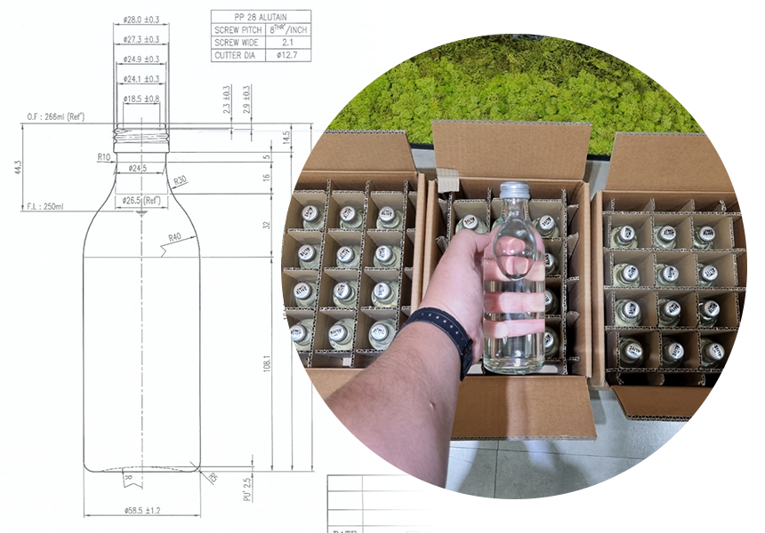 그래서, 특수 제작된 유리병을 선택했고 완전히 밀폐될 수 있도록 특별한 뚜껑까지 선택했어요.