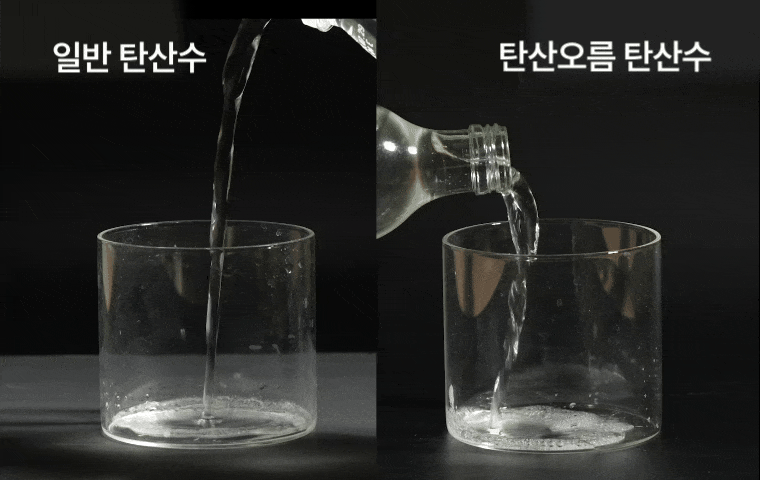 - 일반 탄산수 : 탄산 방울이 작고 탄산감이 비교적 천천히 올라옴