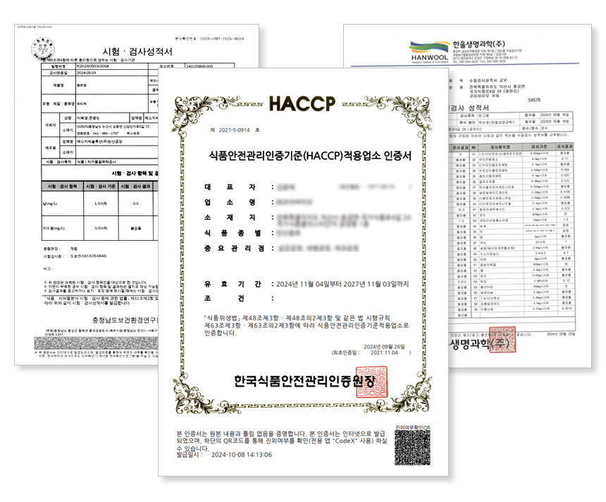 저희 리워드는 철저한 위생과 안전을 최우선으로 두고 생산됩니다. HACCP 인증 시설에서 제조하며, 모든 과정은 엄격한 품질 관리와 안전성 검사를 거치고 있어요.