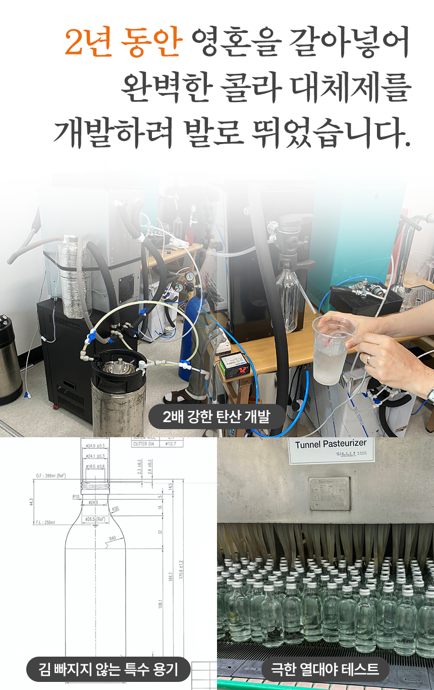 사실 맛, 영양 등 탄산수 자체에는 자신이 있었어요. 하지만 이 좋은 탄산수를 어디에다 담느냐가 가장 큰 고민이었죠. 다른 곳들은 페트병에도, 캔에도 담는데 뭐가 문제였느냐고요?