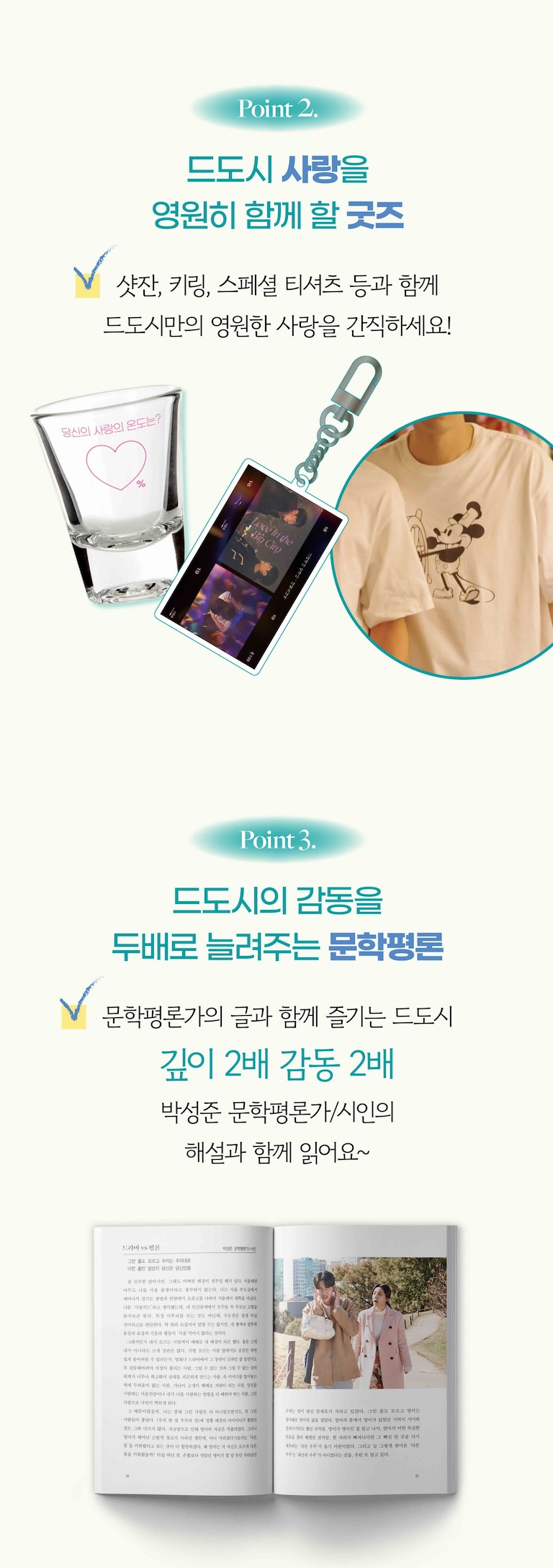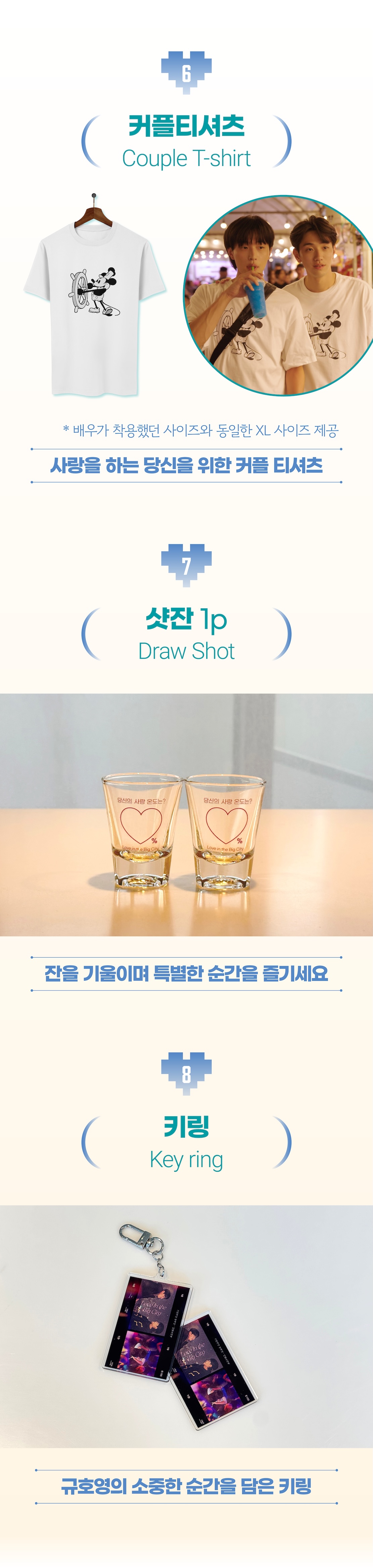 1. 📖 드라마 포토에세이 - '대도시의 사랑법' 감동과 기억을 사진과 글로 기록 2. 🎁 다양한 스페셜 굿즈 - 키링, 엽서, 티셔츠, 샷잔 등 한정판 굿즈 포함 3. 💸 할인 및 한정 혜택 - 최대 30% 할인과 펀딩 전용 희소 굿즈 제공