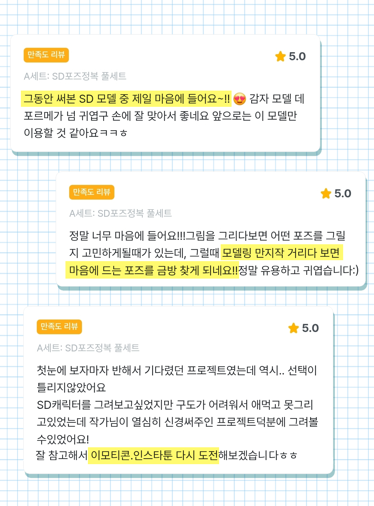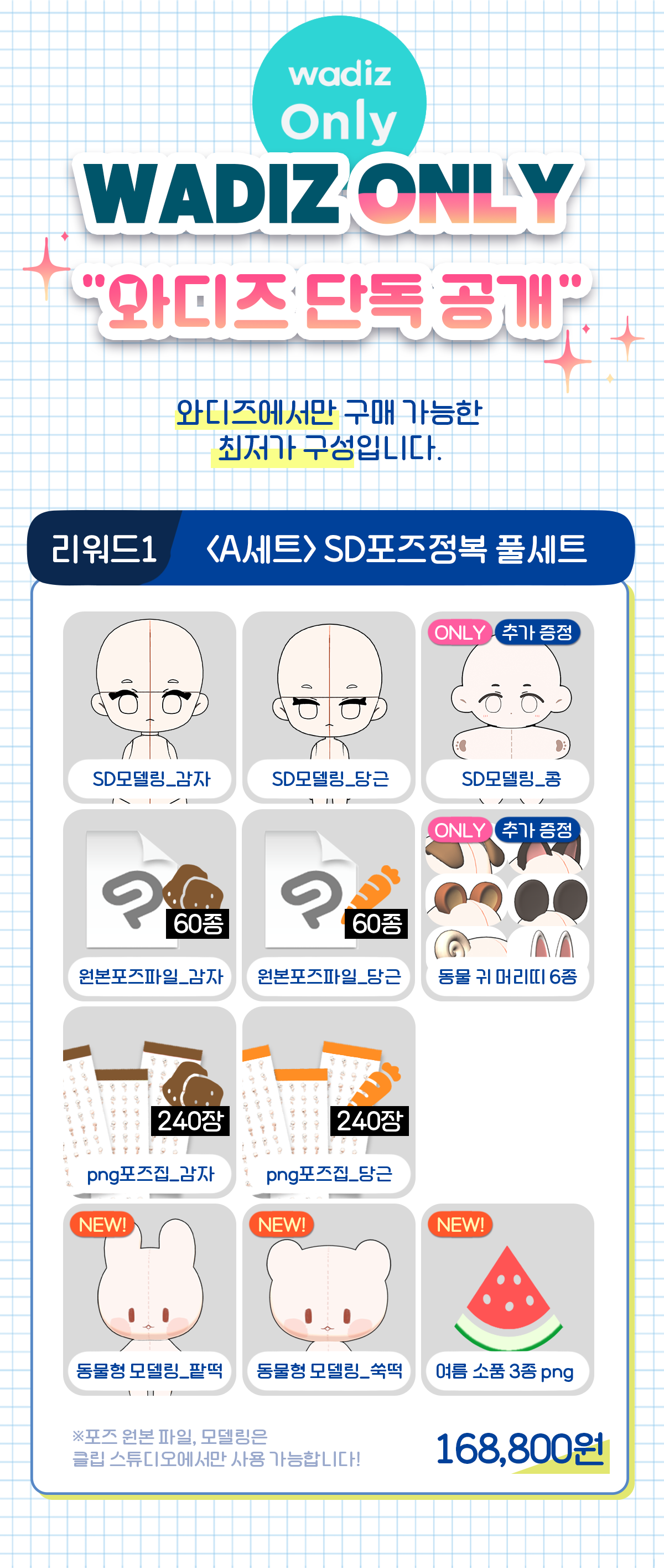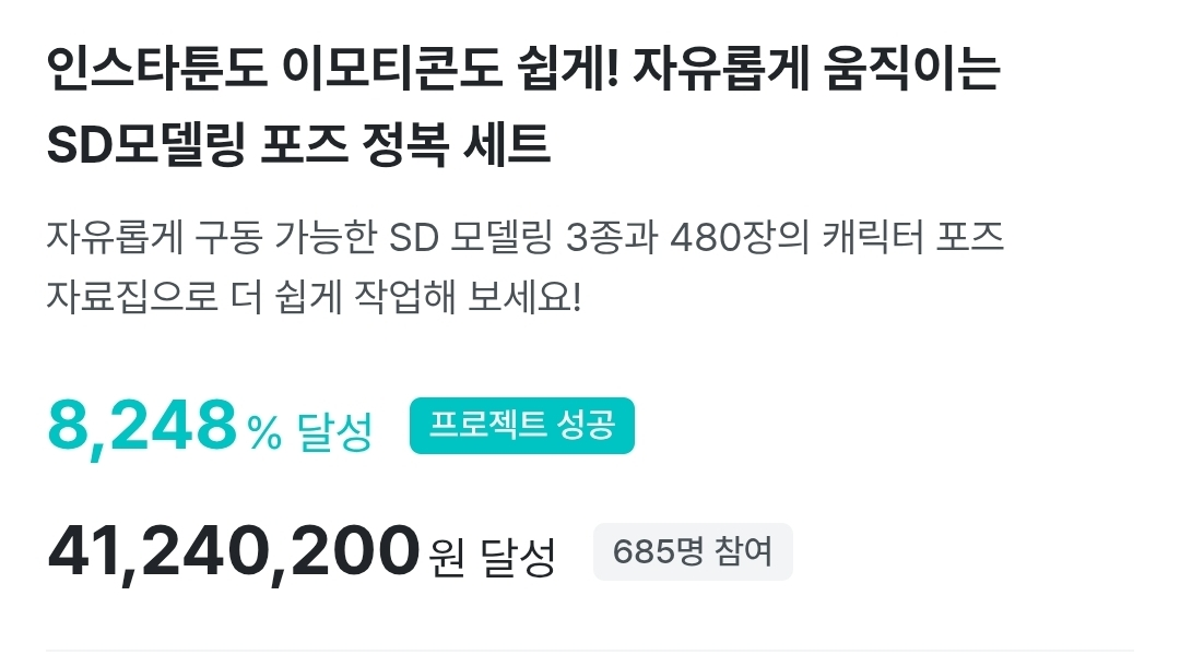 이전에 와디즈에서 '인스타툰도 이모티콘도 쉽게! 자유롭게 움직이는 SD모델링 포즈 정복 세트' 를 펀딩했는데,