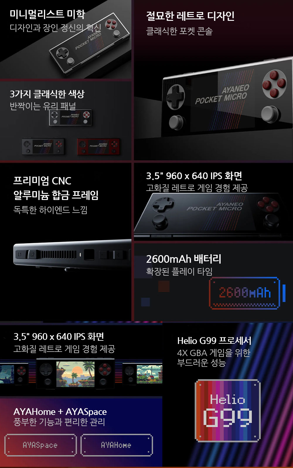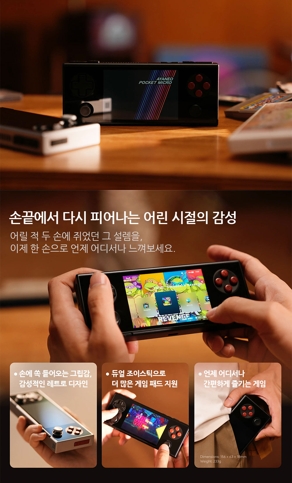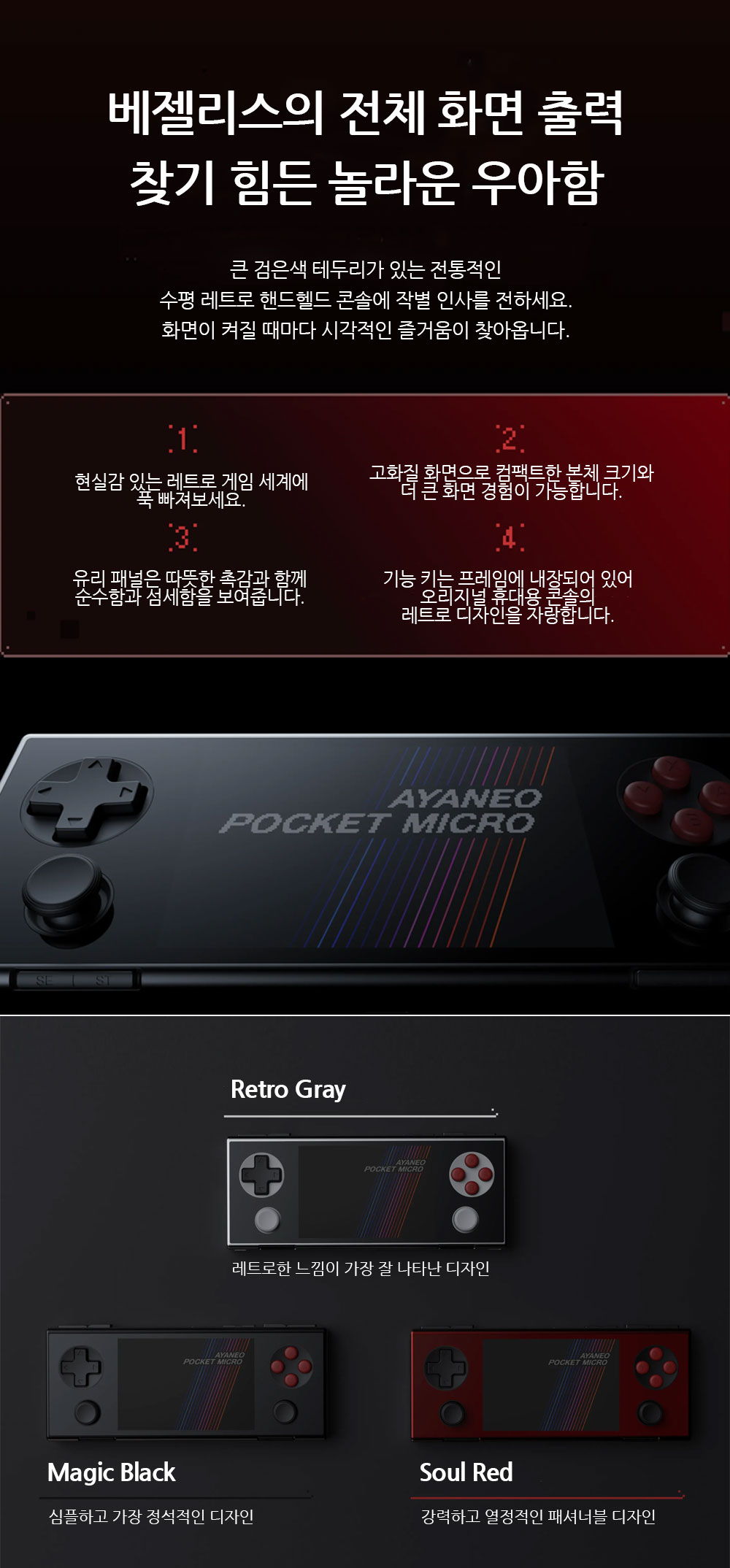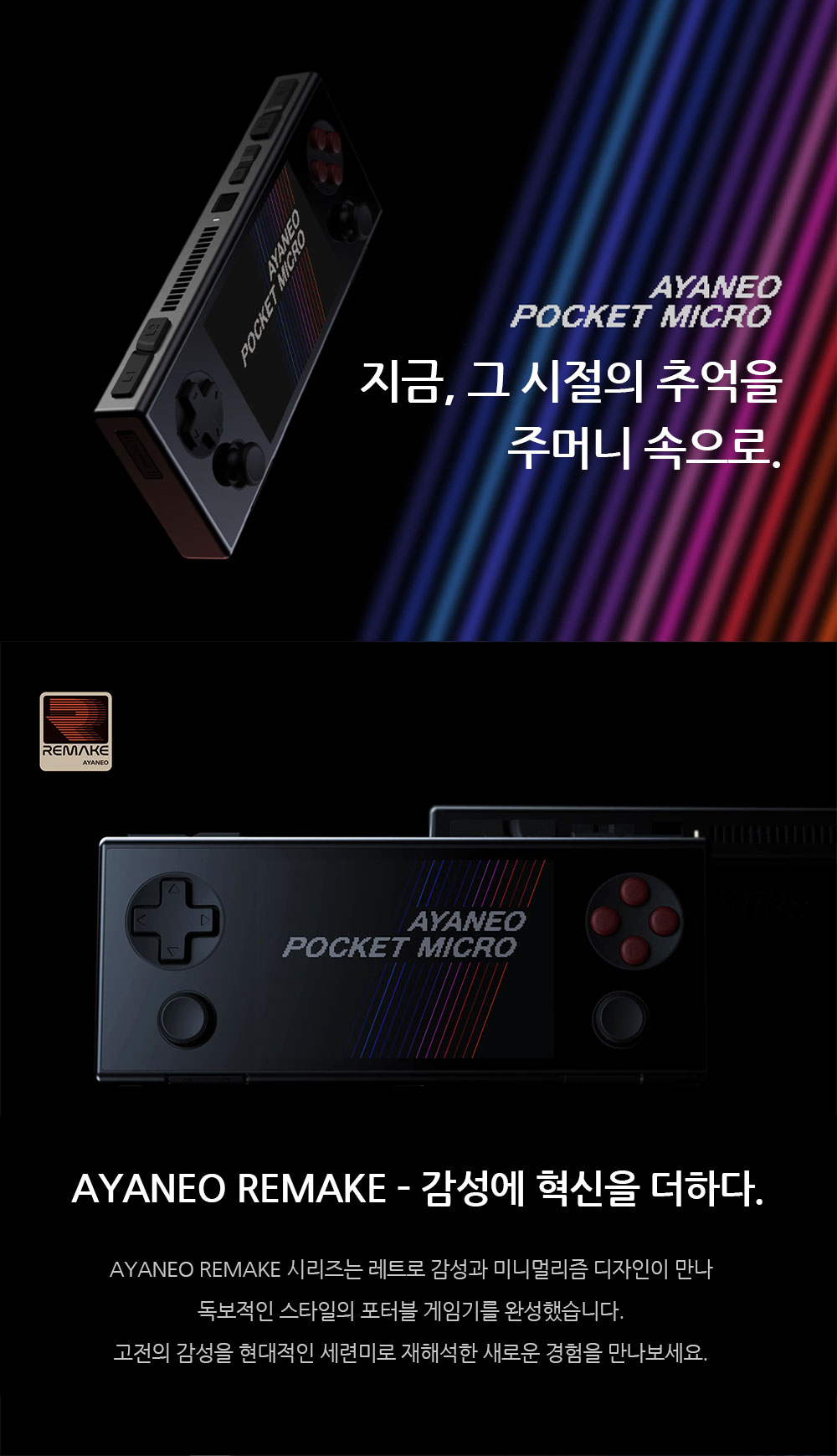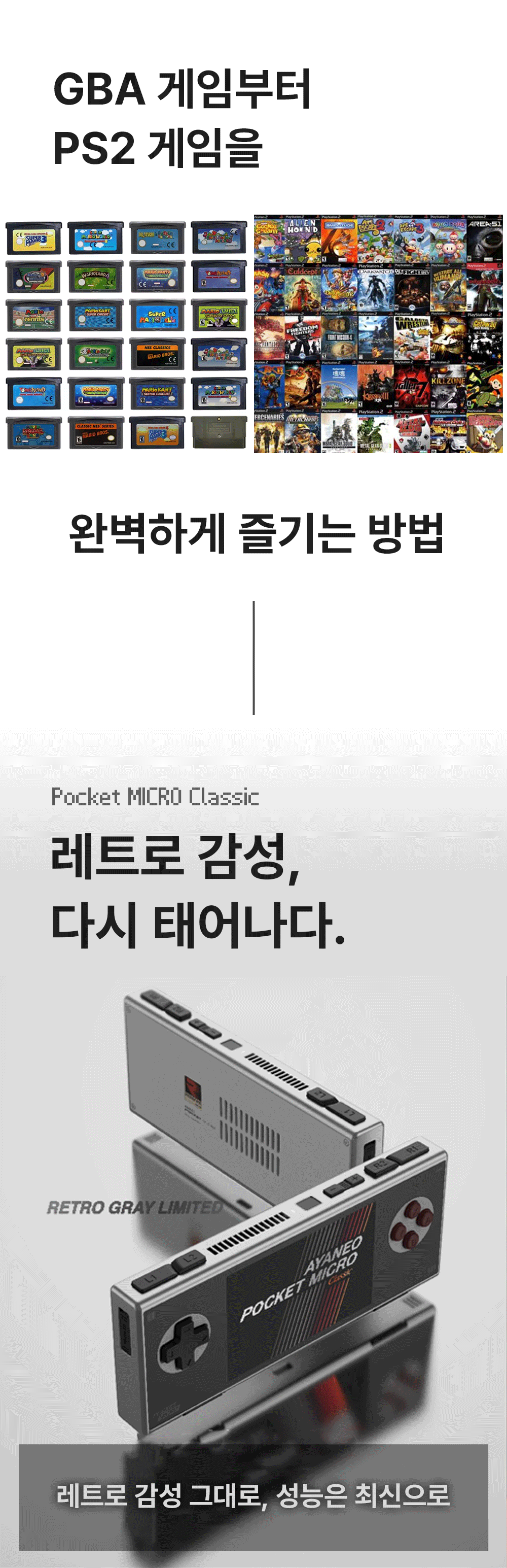 1. 🎮 닌텐도 감성 소형 안드로이드 게임기 - 닌텐도 게임보이 미크로 오마주, 최신 사양 탑재 2. 🕹️ 레트로 감성·미니멀 디자인 결합 - 컴팩트한 크기로 휴대성 우수, 고전 게임 완벽 지원 3. 🎁 와디즈 한정 사은품 증정 - 정품 파우치와 강화 유리 필름 포함, 국내 공식 A/S 지원