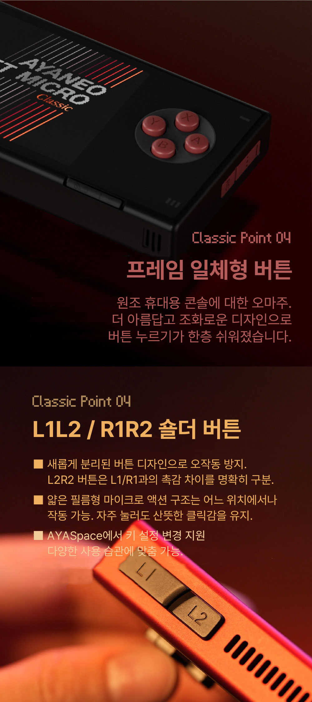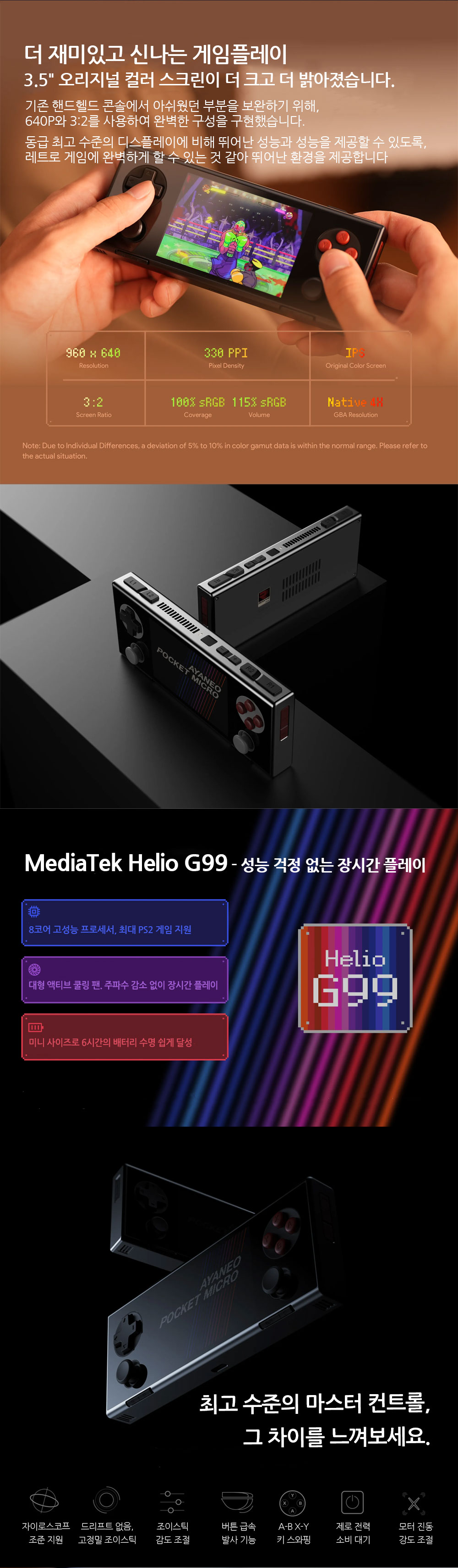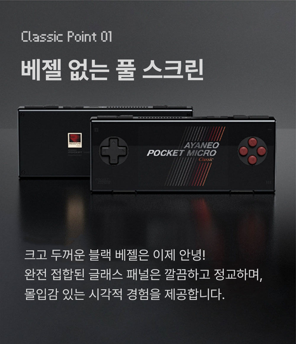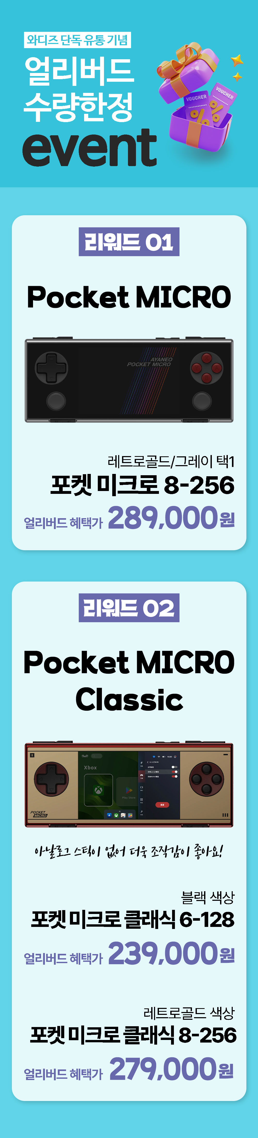 1. 🎮 닌텐도 감성 소형 안드로이드 게임기 - 닌텐도 게임보이 미크로 오마주, 최신 사양 탑재 2. 🕹️ 레트로 감성·미니멀 디자인 결합 - 컴팩트한 크기로 휴대성 우수, 고전 게임 완벽 지원 3. 🎁 와디즈 한정 사은품 증정 - 정품 파우치와 강화 유리 필름 포함, 국내 공식 A/S 지원