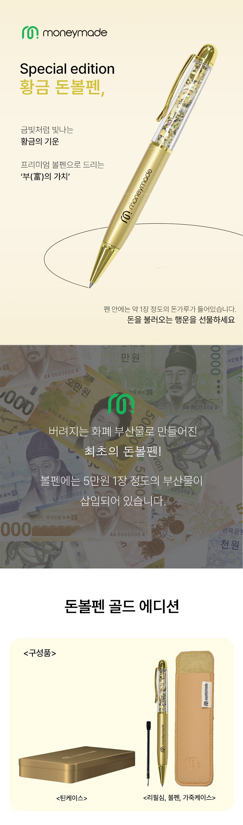 - 세상에 단 하나뿐인 돈을 부르는 볼펜이 황금빛으로 돌아왔습니다.