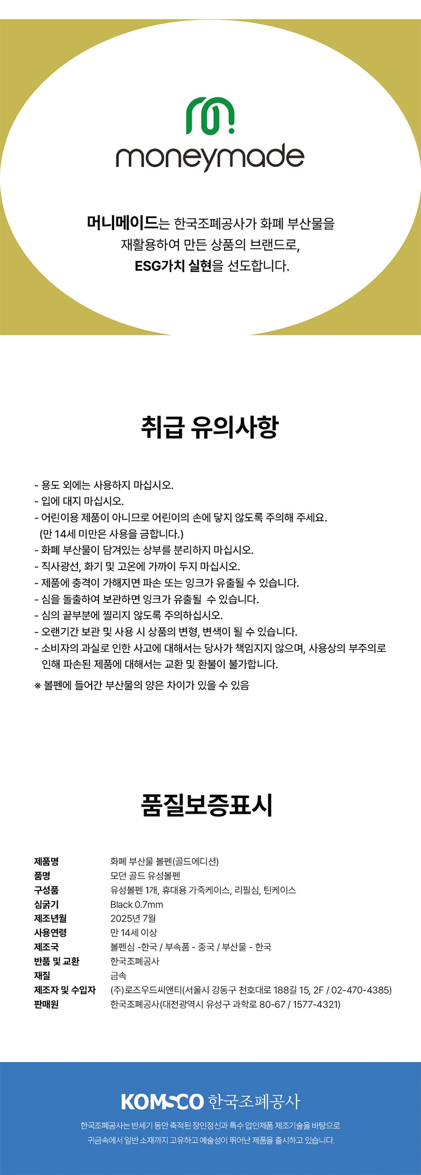 - 소각되던 화폐 부산물이 새로운 가치로 변신한 제품, 여러분도 그 가치 변화에 참여한 소중한 분입니다.