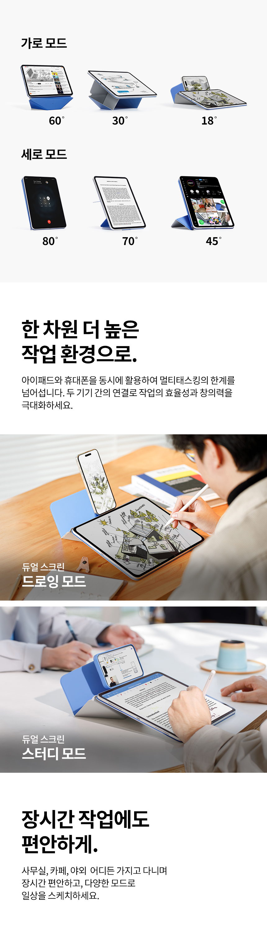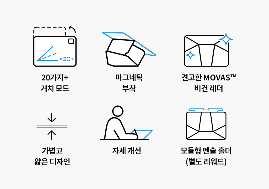 1. 📱 20가지 모드 다기능 거치대 - 20가지 이상 모드로 창의력과 생산성 극대화 2. 🎨 인체공학적 플로팅 스테이션 - 편안한 작업과 휴식 모드 전환으로 효율성 향상 3. 💸 할인 혜택 및 펜슬 홀더 옵션 - 아이패드 모델별 할인과 모듈형 펜슬 홀더 제공