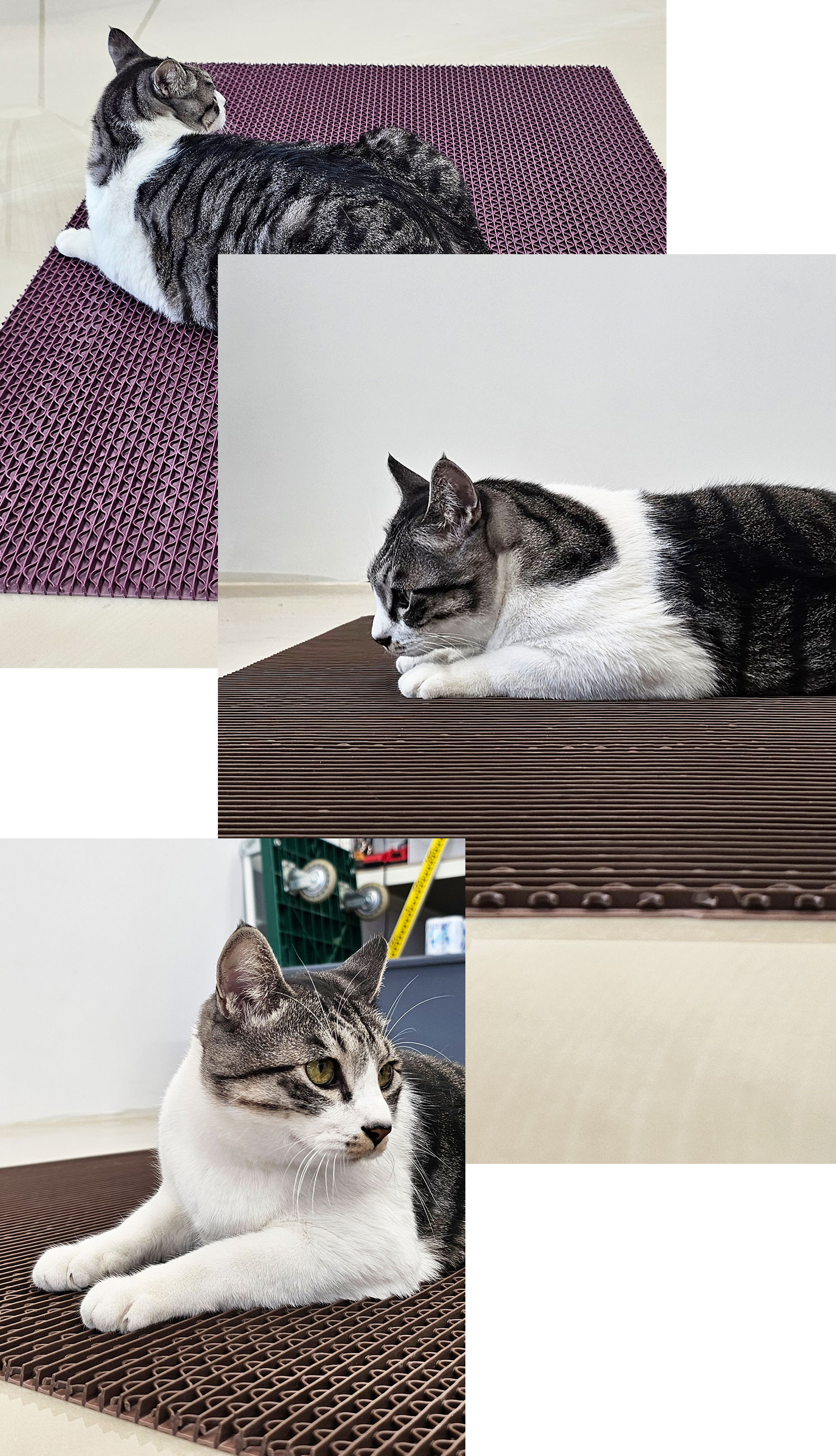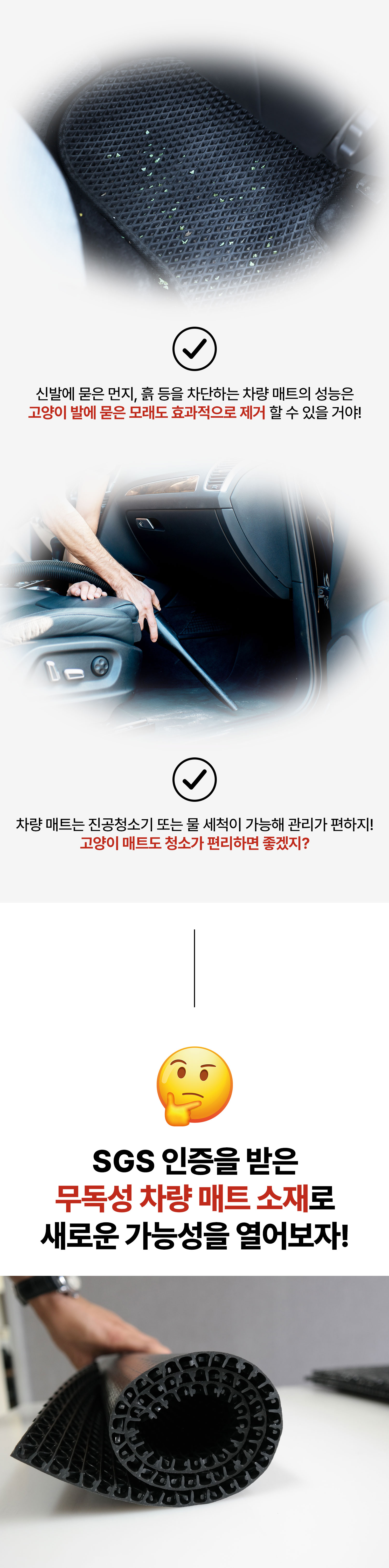 이 공통점을 기반으로, 차량 매트의 기술력을 그대로 살린 고양이 전용 사막화 방지 매트를 개발하게 되었습니다.