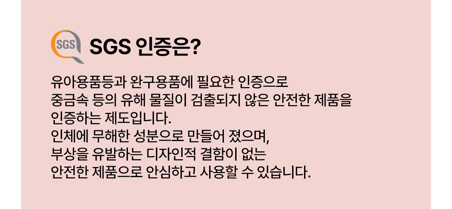 SGS 인증 받은 친환경 신 소재 원단을 사용하였으며, 유해 물질 검출 테스트를 통화한 안전한 제품으로 불쾌한 냄새와 유해 성분의 배출이 없는 친환경 우수 제품입니다.