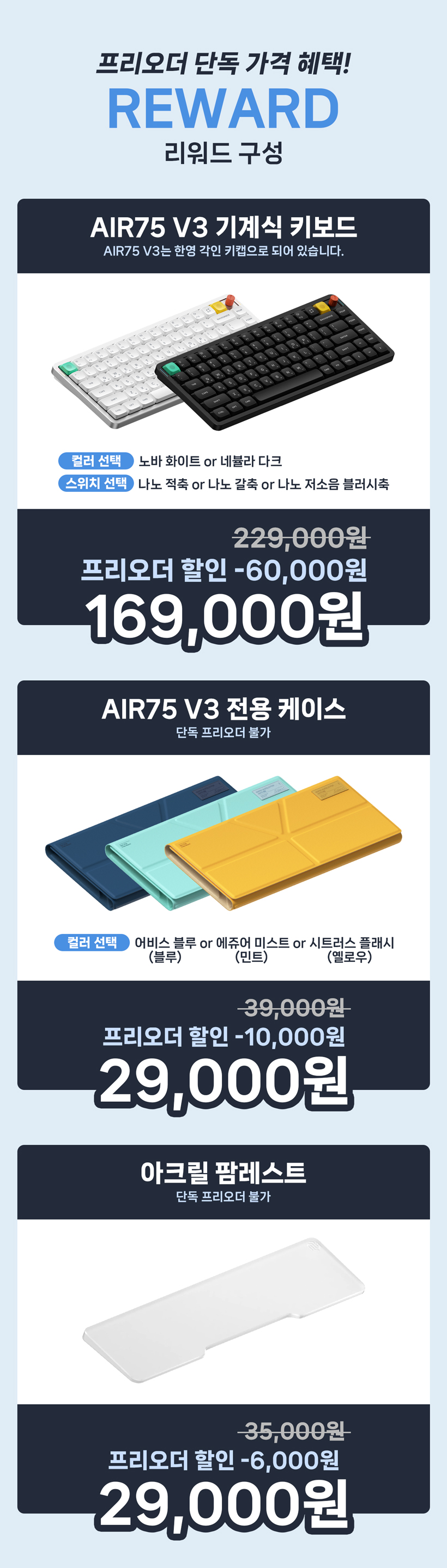 노브 모듈 적용으로 사무용, 일반용, 게이밍용 두루 호환하여 사용할 수 있는 기계식키보드로 AIR75 V3를 적극 추천 드립니다. NUPHY가 유저 분들께 사랑받는 브랜드가 될 수 있도록 항상 노력하겠습니다.