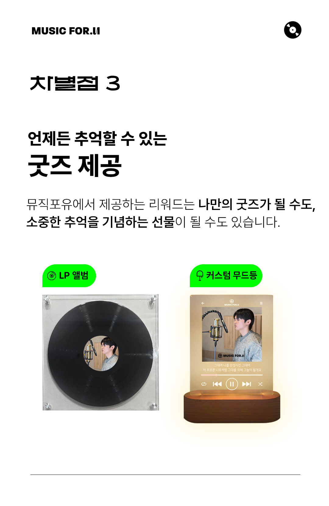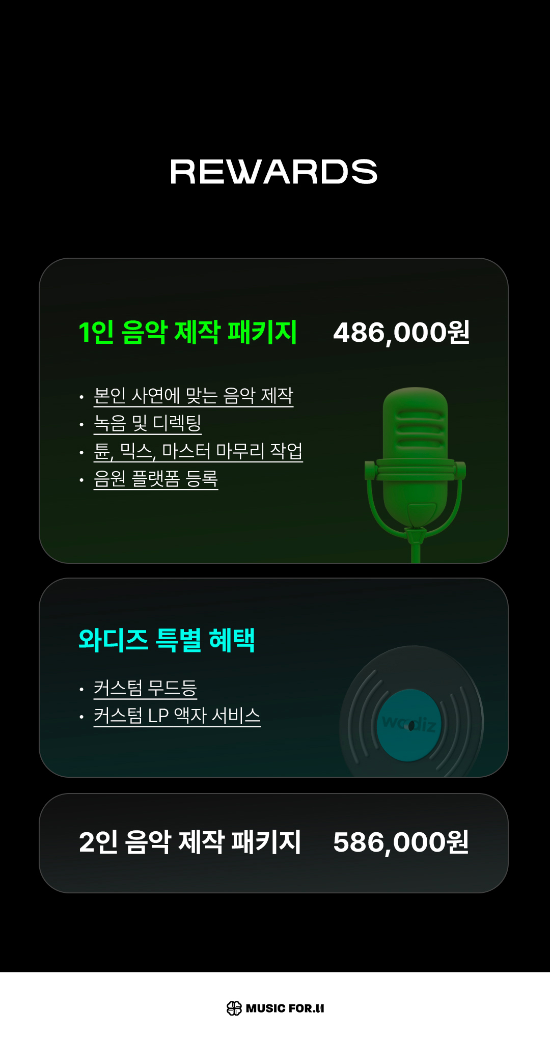 뮤직포유는 고객의 소중한 순간을 음악으로 기록하는 맞춤형 음악 제작 서비스를 제공하기 위해 와디즈를 찾아왔습니다.