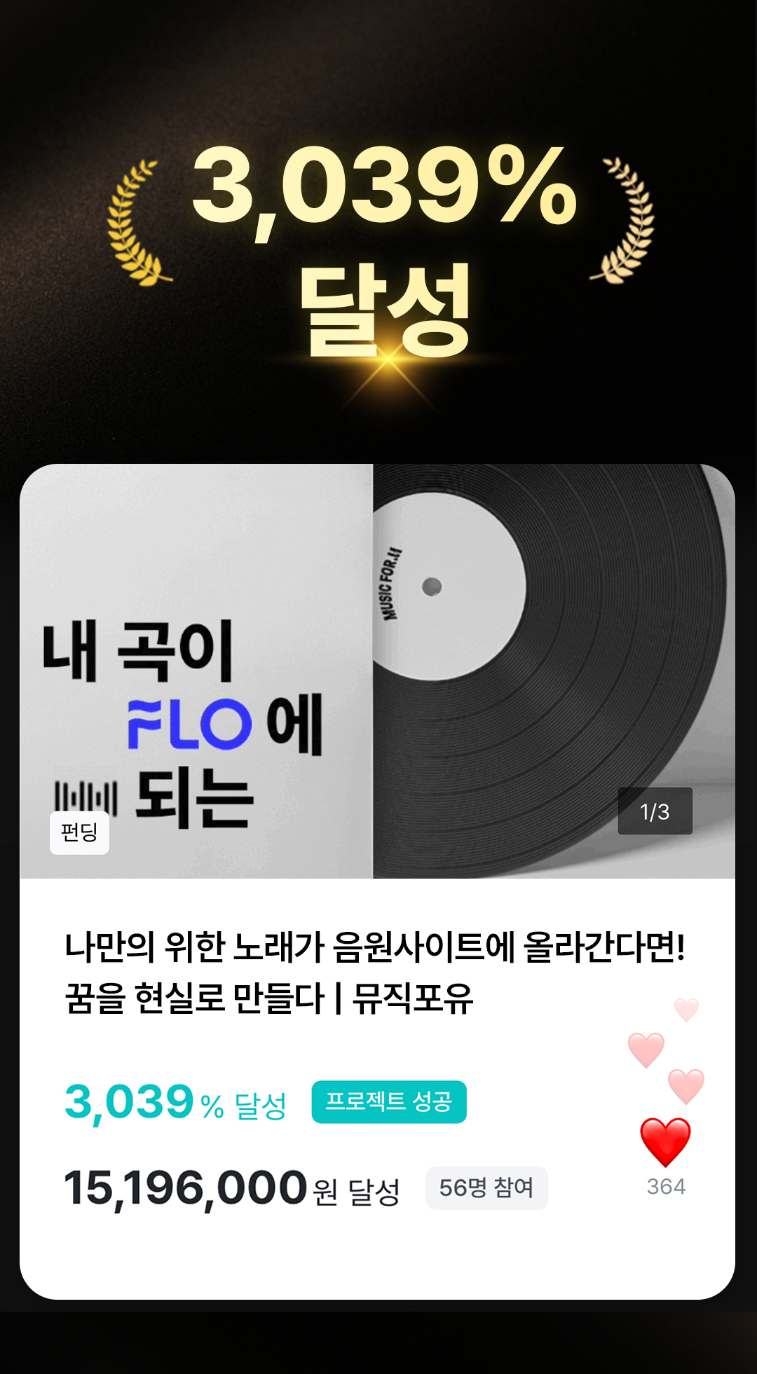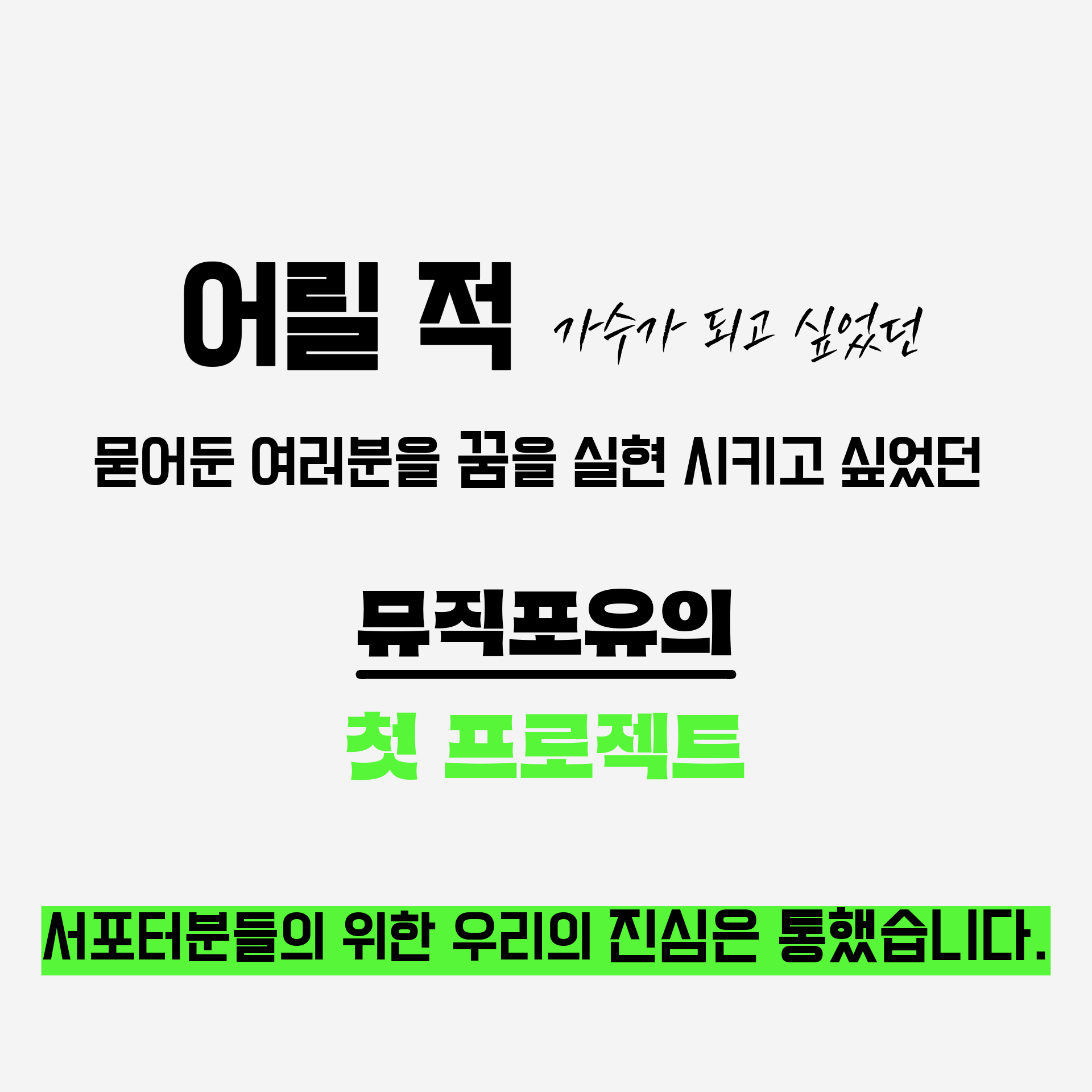 저희는 서포터님들의 후원에 진심으로 감사드리며, 이 펀딩이 단순한 프로젝트를 넘어, 더 많은 사람들에게 특별한 음악 경험을 선사할 수 있는 기회가 되기를 바랍니다.