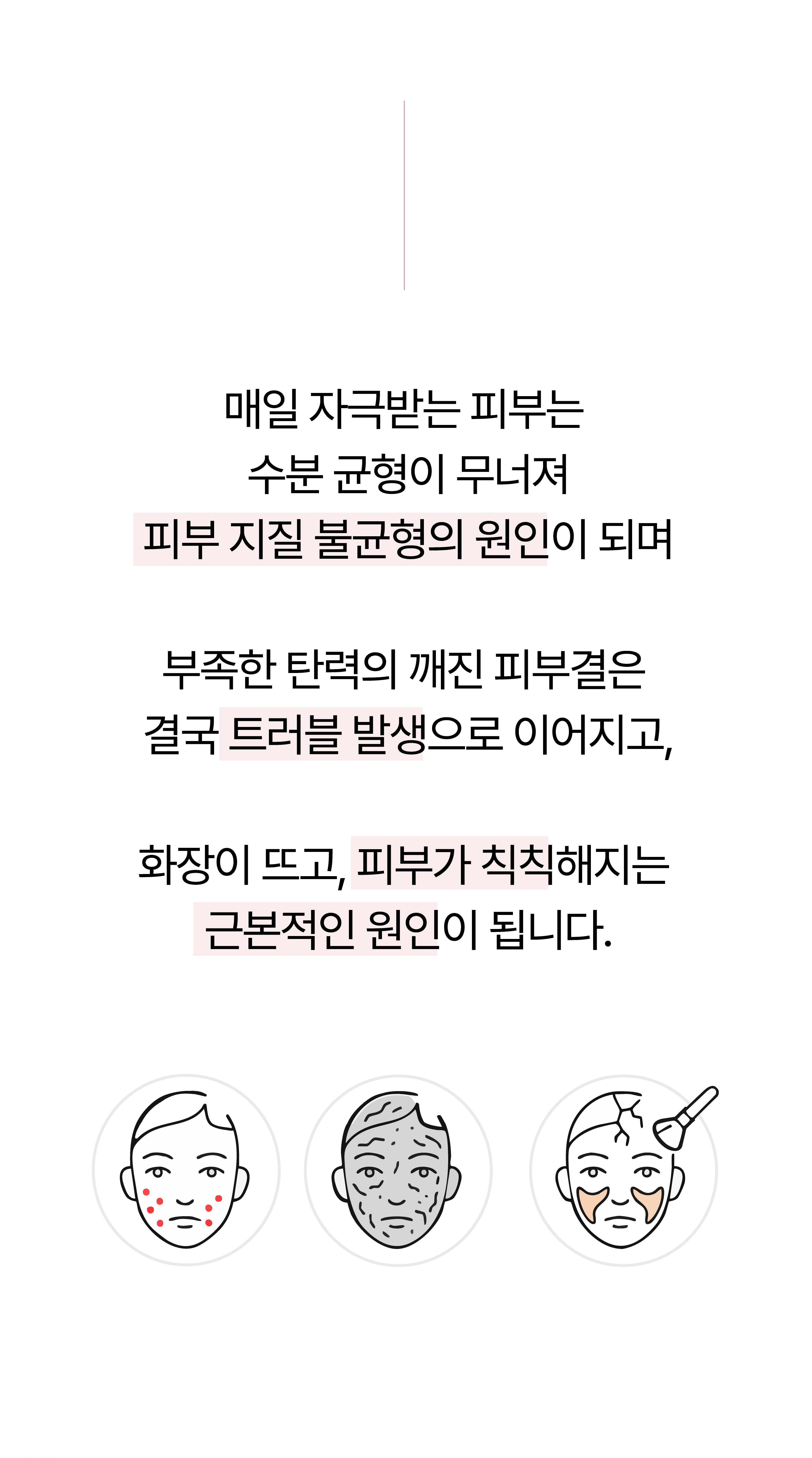 부족한 탄력, 깨진 피부결 → 트러블 발생