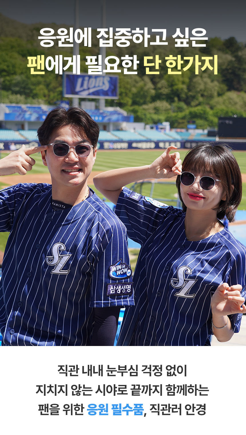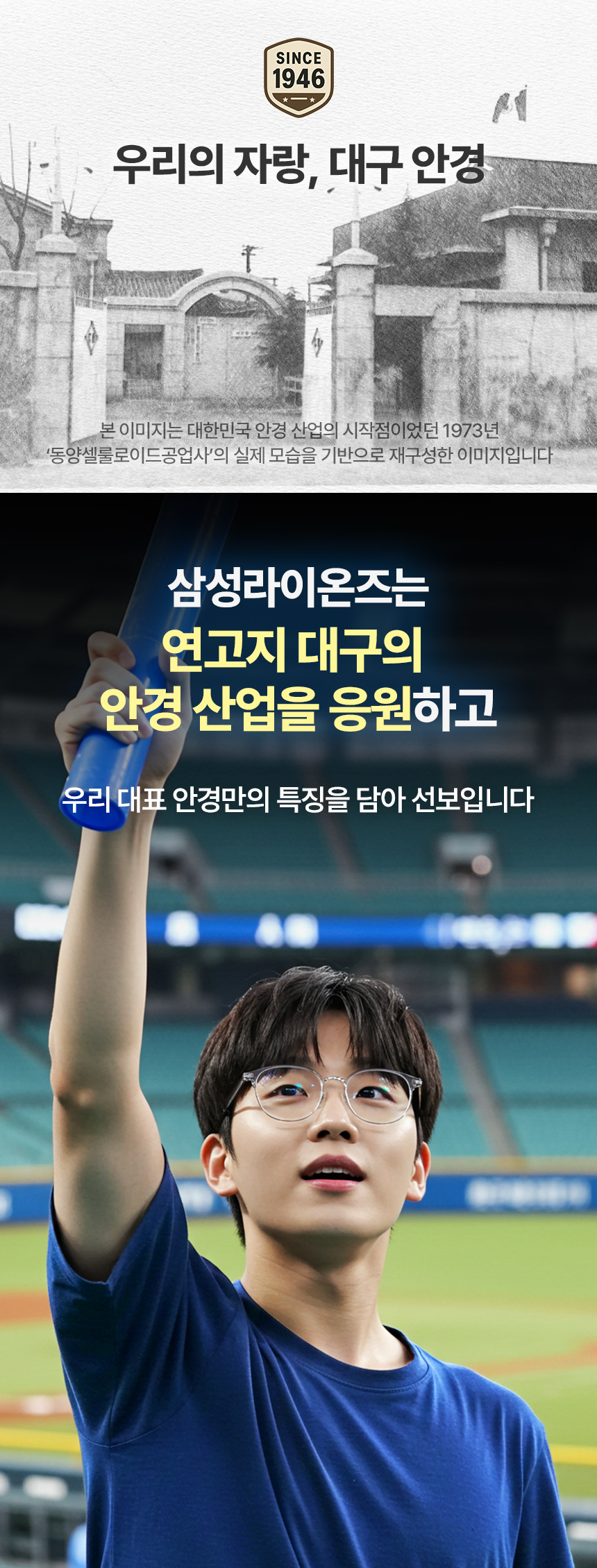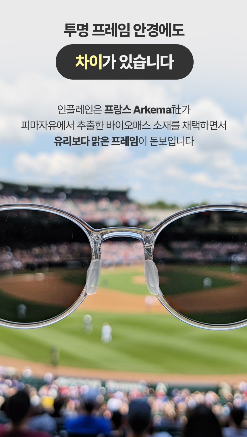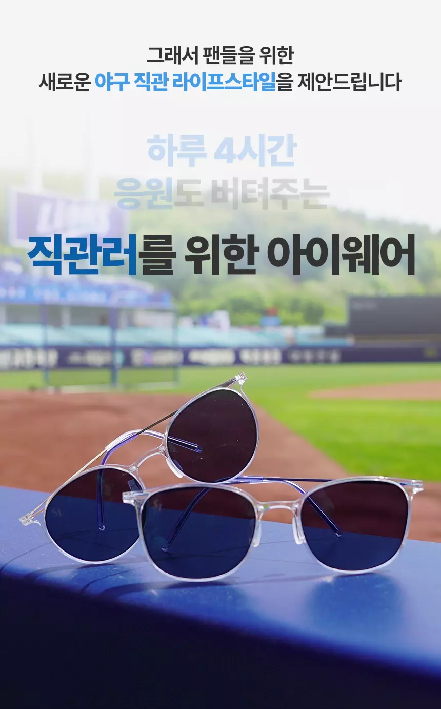 이번 '삼성라이온즈 X 인플레인' 프로젝트는 연고지 대구 안경산업에 기여하고, 점점 많아지고 있는 직관러에게 셀프케어(Self-Care) 트렌드에 맞춰 아에케어안경(Eye Caring Glasses)을 제시합니다.