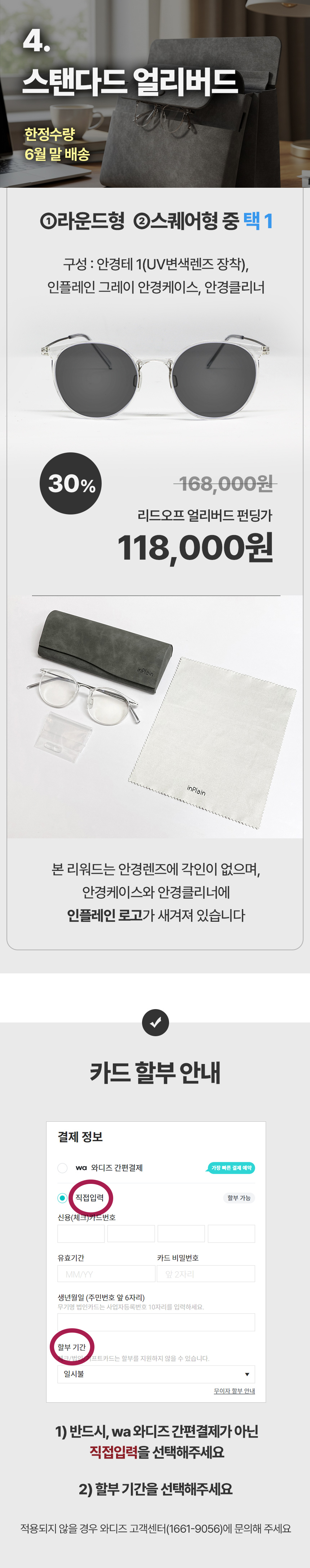 또한 InPlain은 대구에서 생산되는 안경 브랜드로서, 대구 안경 산업의 저변 확대와 제조 기반의 가치를 전하는 활동에 앞장서고 있습니다. 지역 기반 브랜드의 가치에 공감하는 서포터가 모여 있는 와디즈에서 이 여정을 함께할 수 있다고 믿습니다.