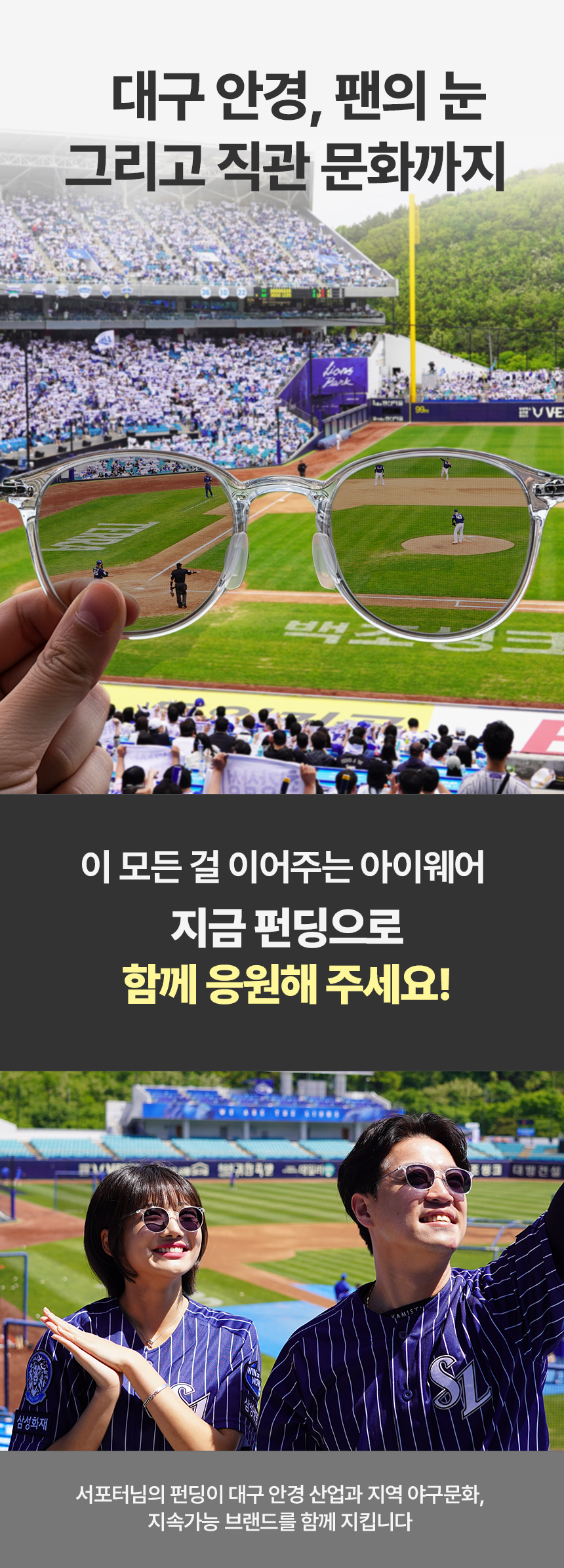 야구가 일상으로 들어온 시점에 새로운 직관러 셀프케어 라이프스타일과 '메이드 인 대구' 캠페인을 기획한 jacklin, 관찰을 통해 발견된 라이프스타일을 새로운 관점으로 크리에이션해 Creative Directing을 이끈 sooeun, 안경과 관련한 전반적인 흐름과 트렌드, 모니터링에 참여한 Jason이 주력 프로젝트멤버로 참여해 이번 펀딩을 통해 직관러들과 호흡하고 있습니다.