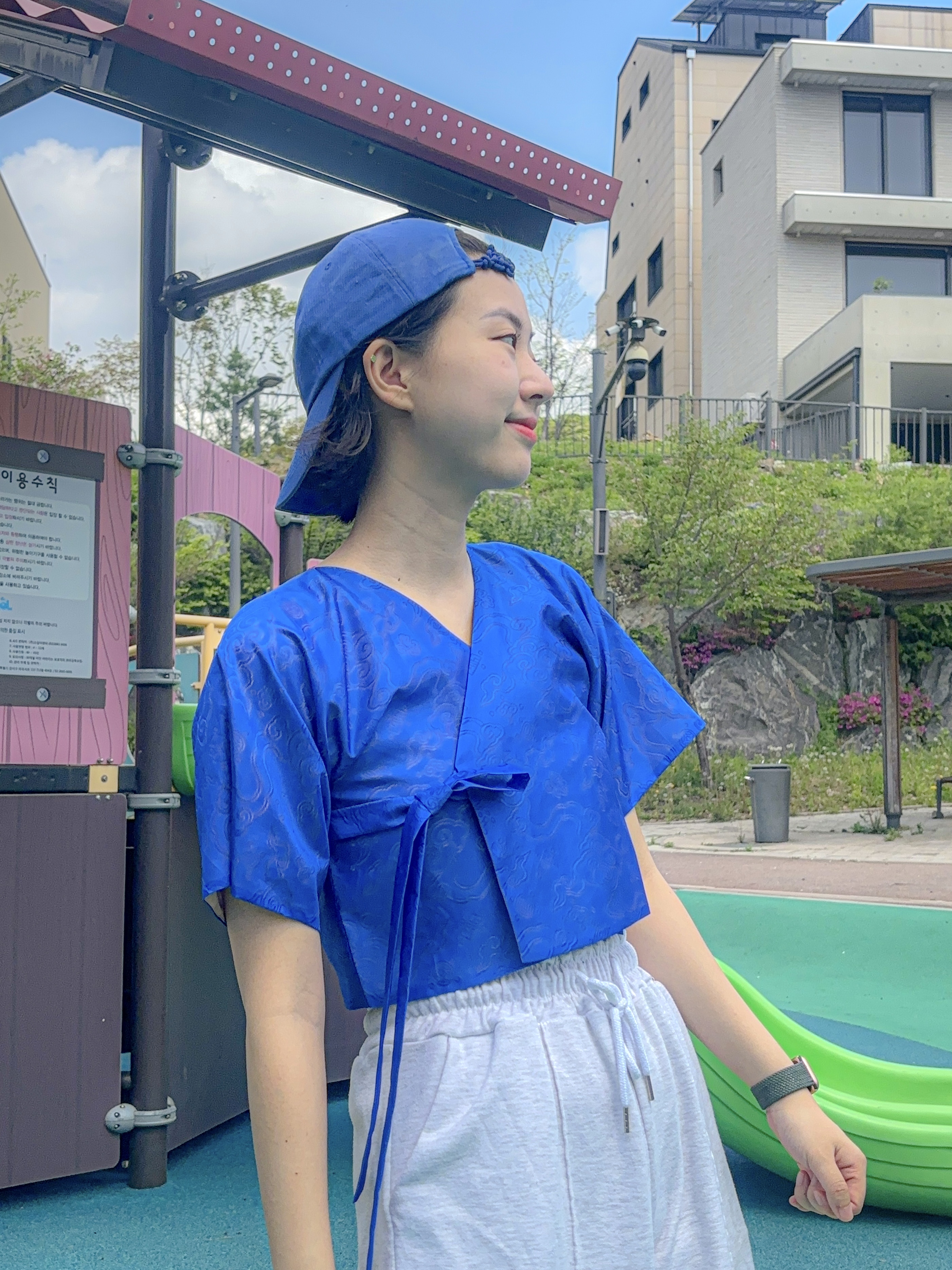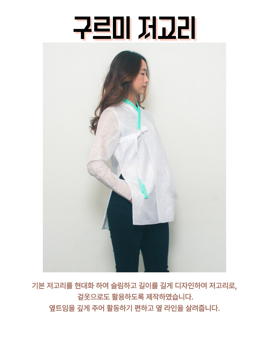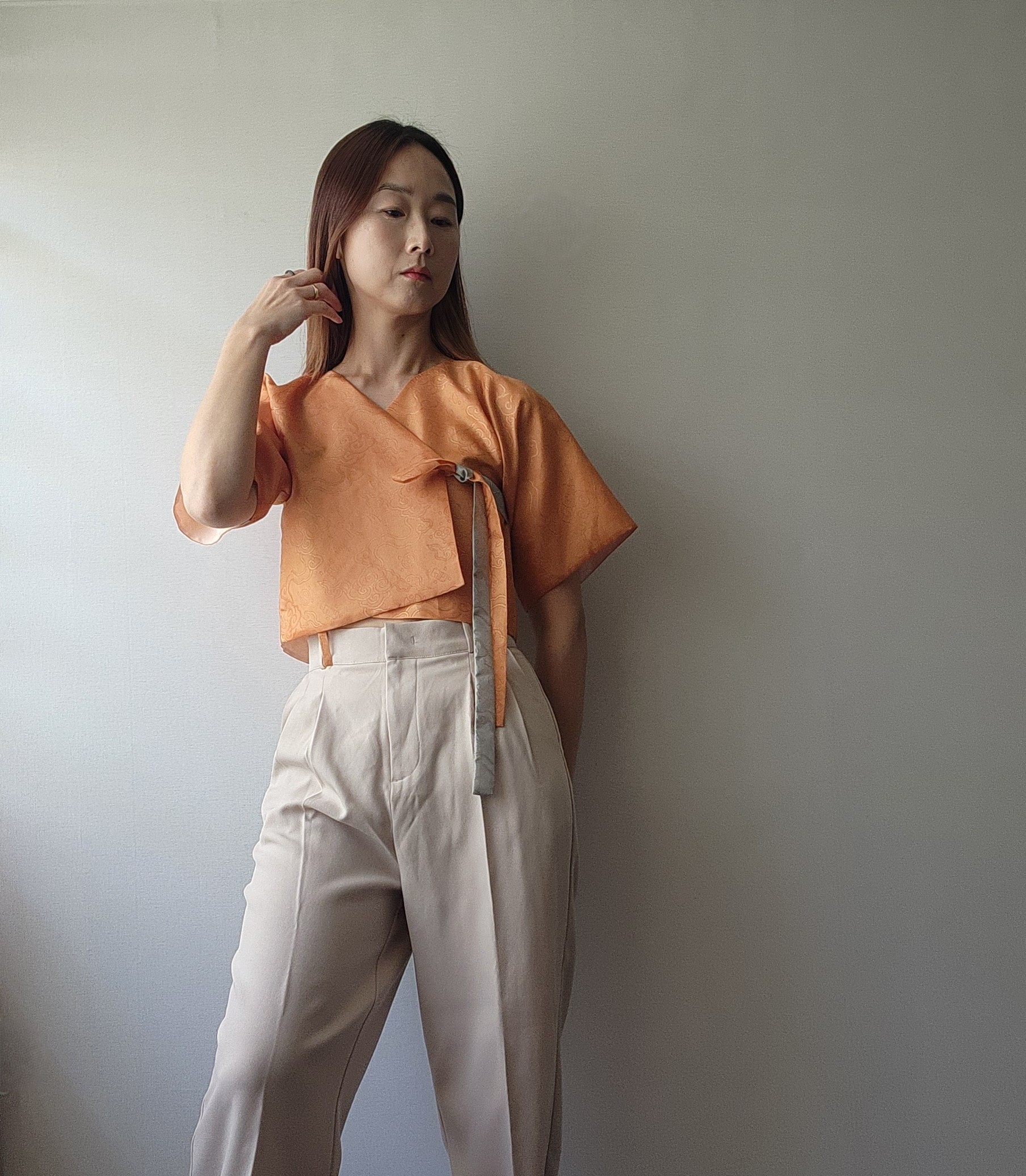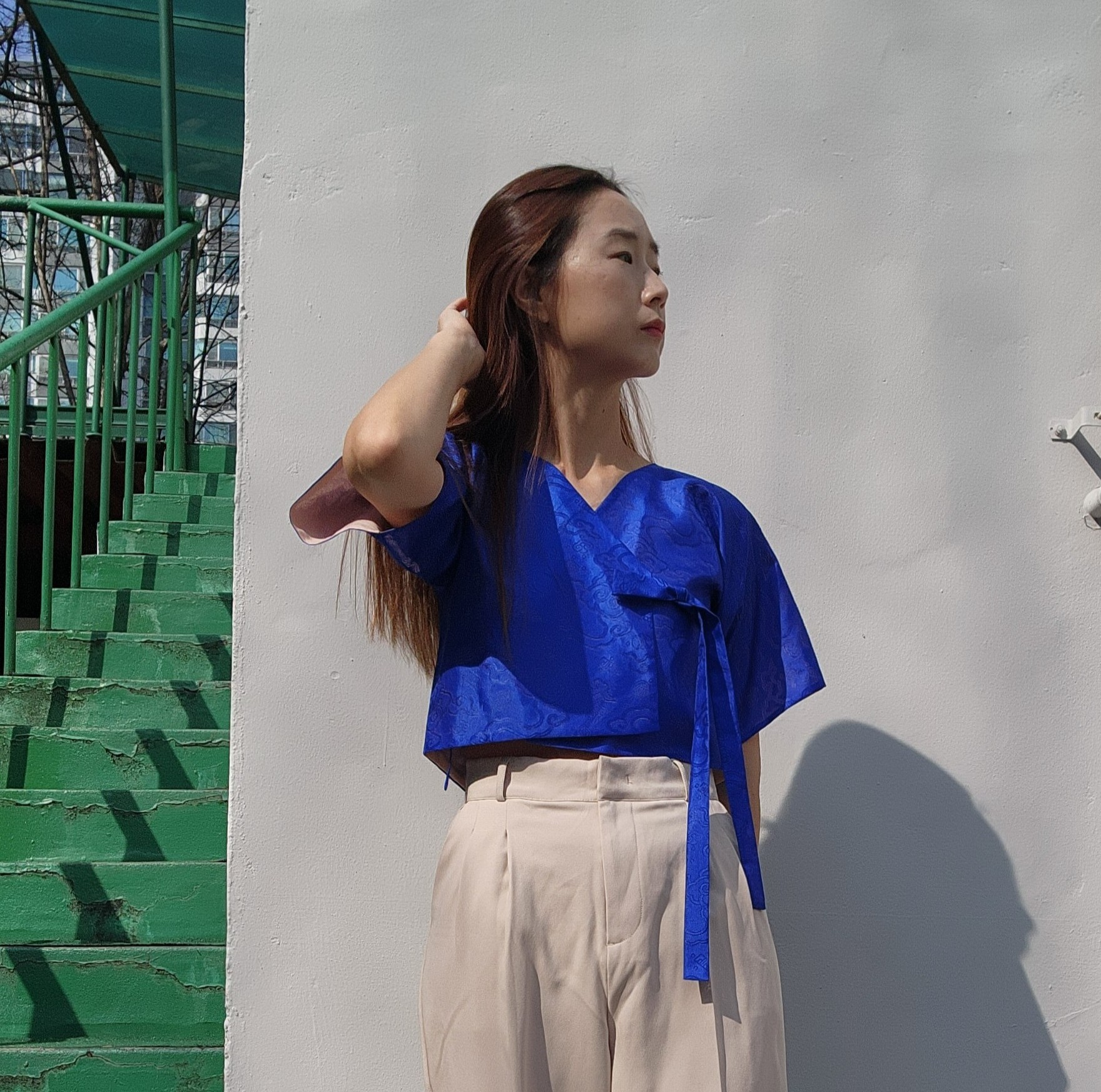 크롭 기장과 저고리, 자켓형 패턴으로 재해석했어요.