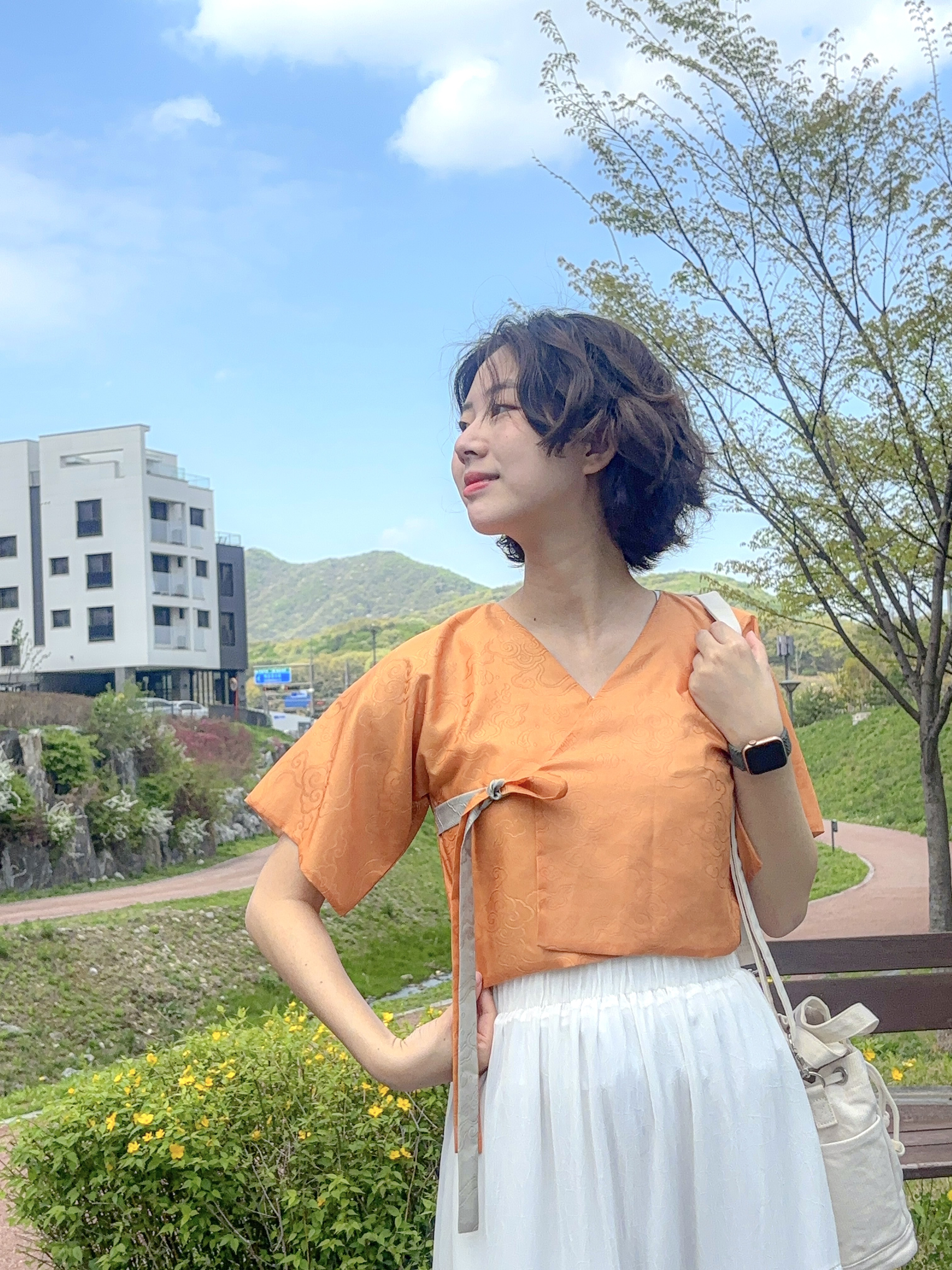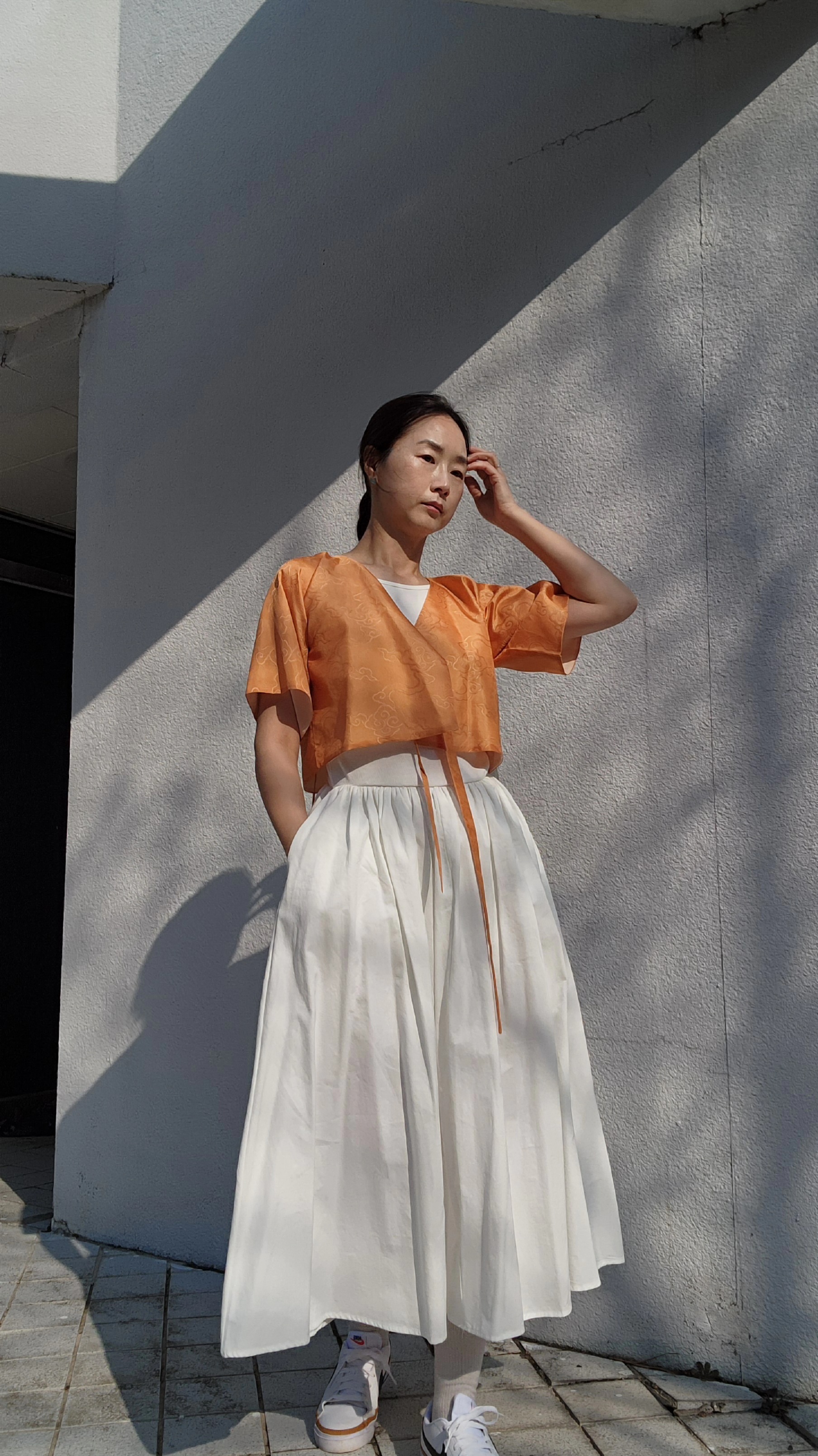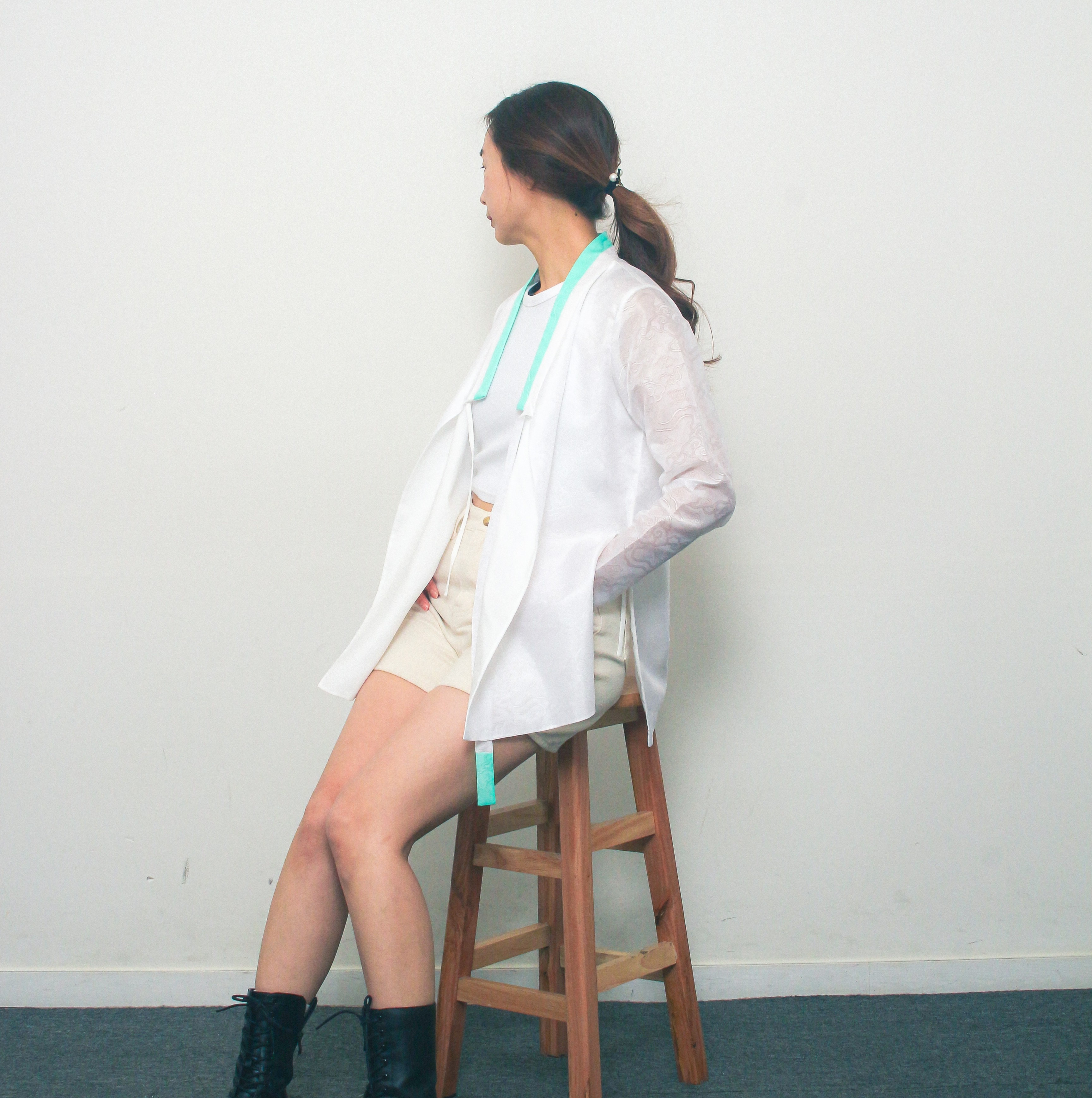 크롭 기장과 저고리, 자켓형 패턴으로 재해석했어요.