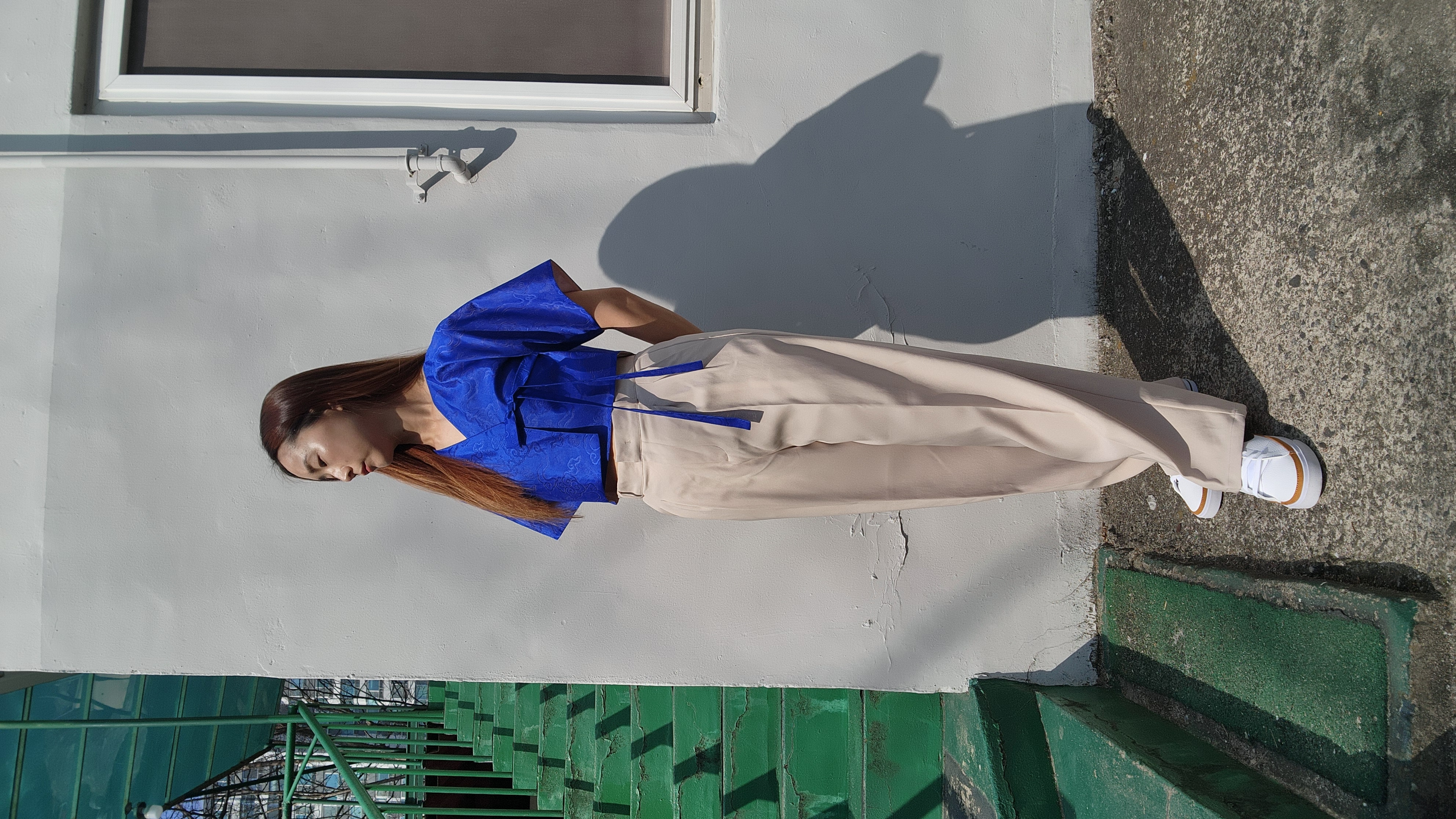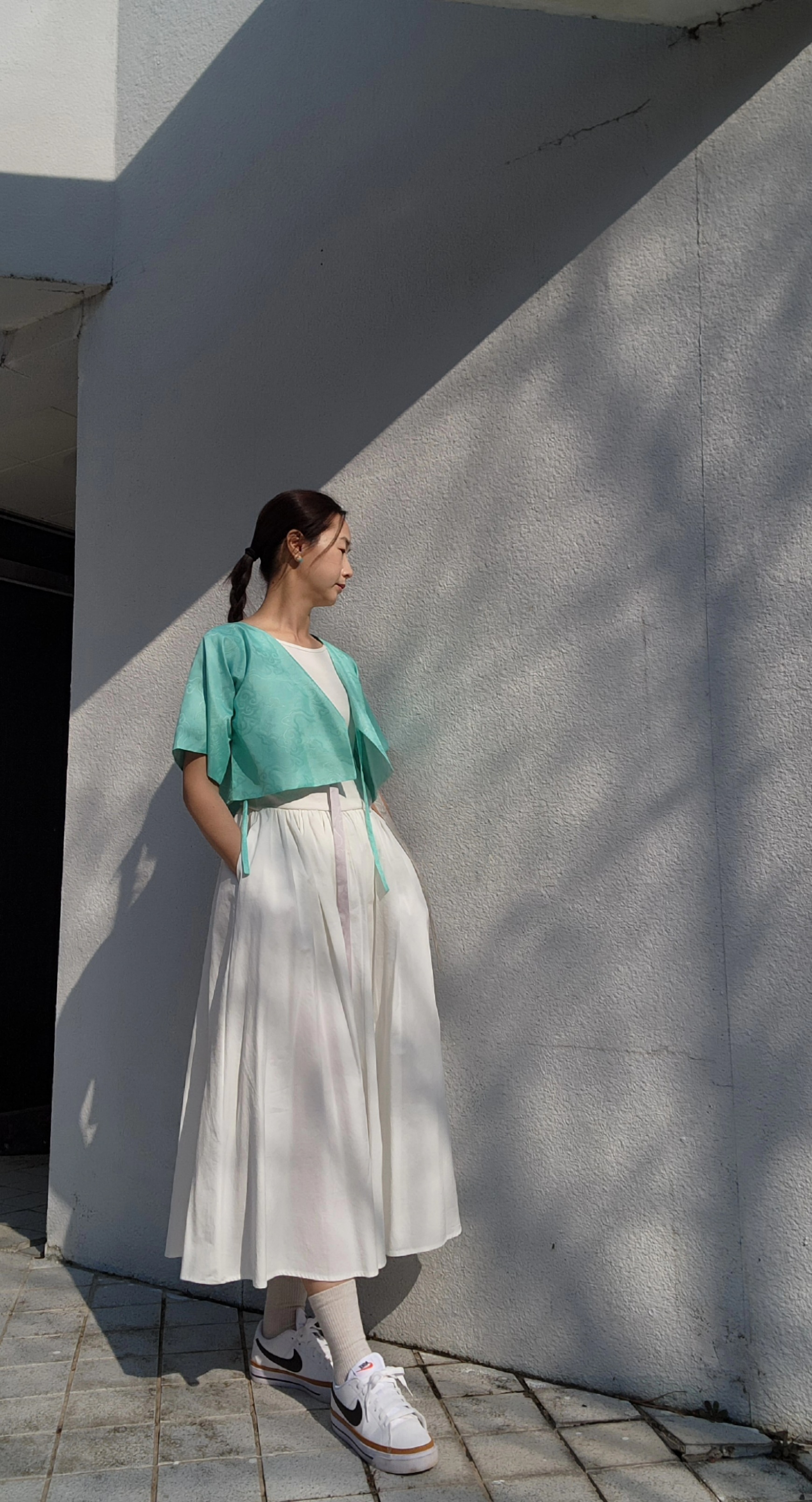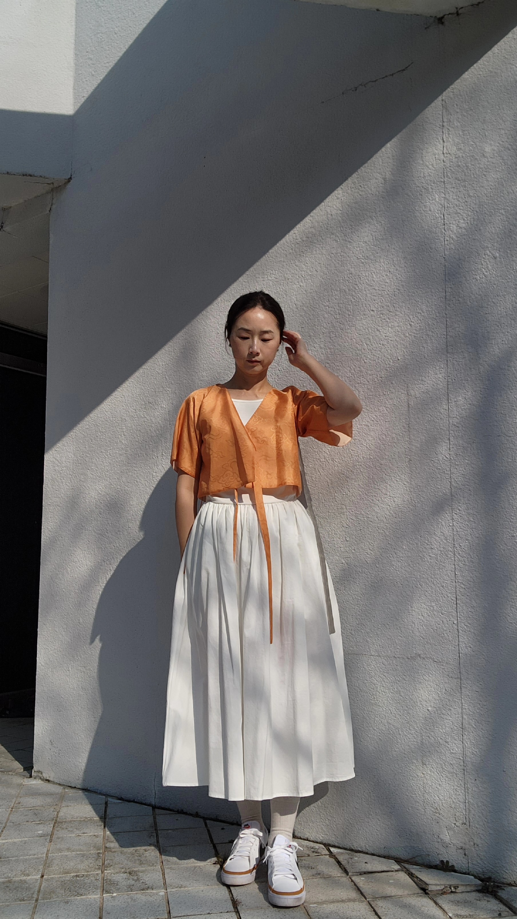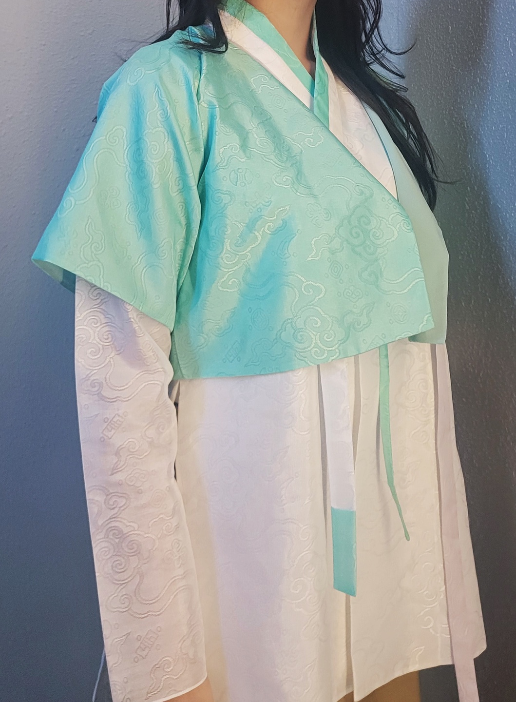 크롭 기장과 저고리, 자켓형 패턴으로 재해석했어요.