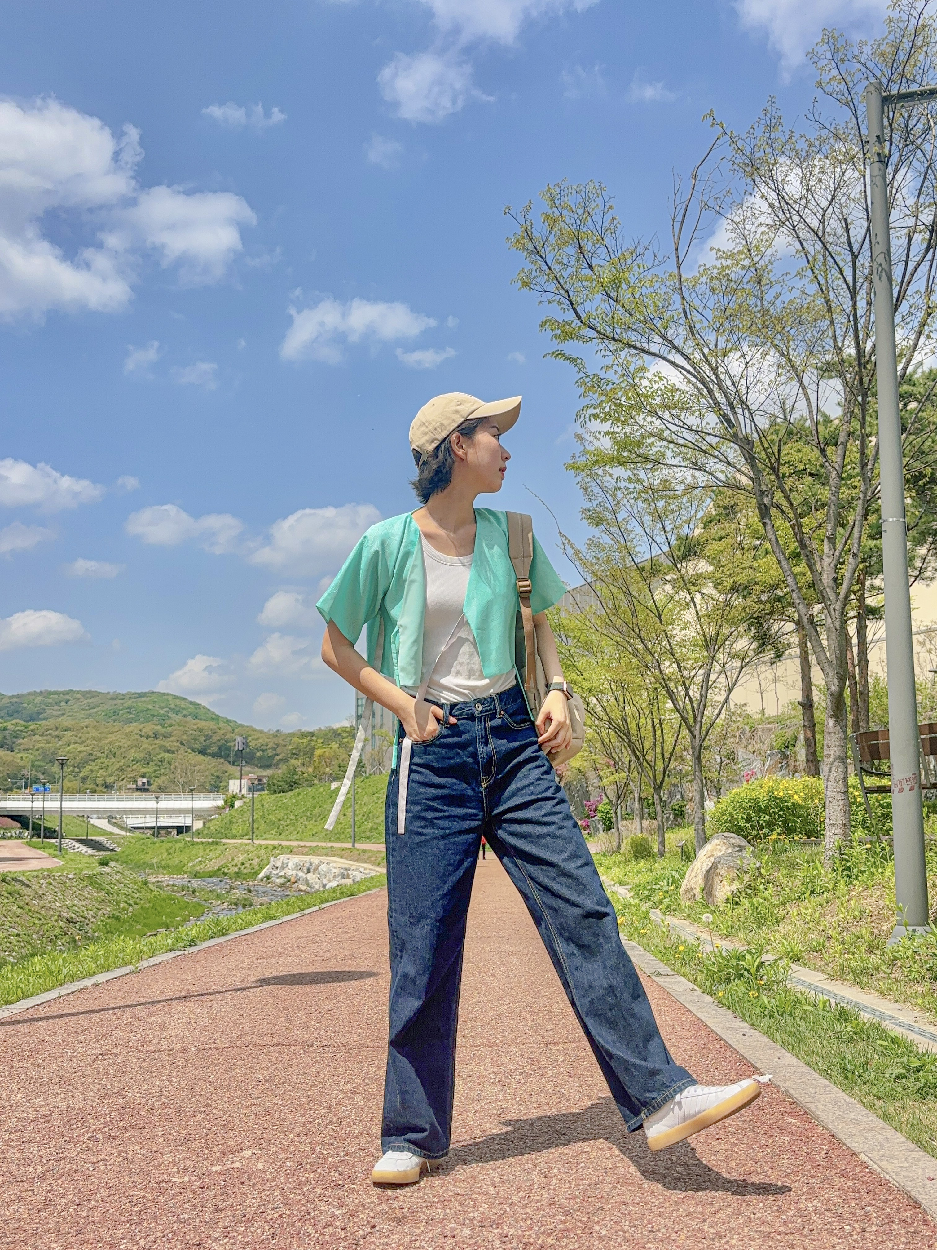 ✔ 데님 팬츠와 스니커즈로 데일리한 무드