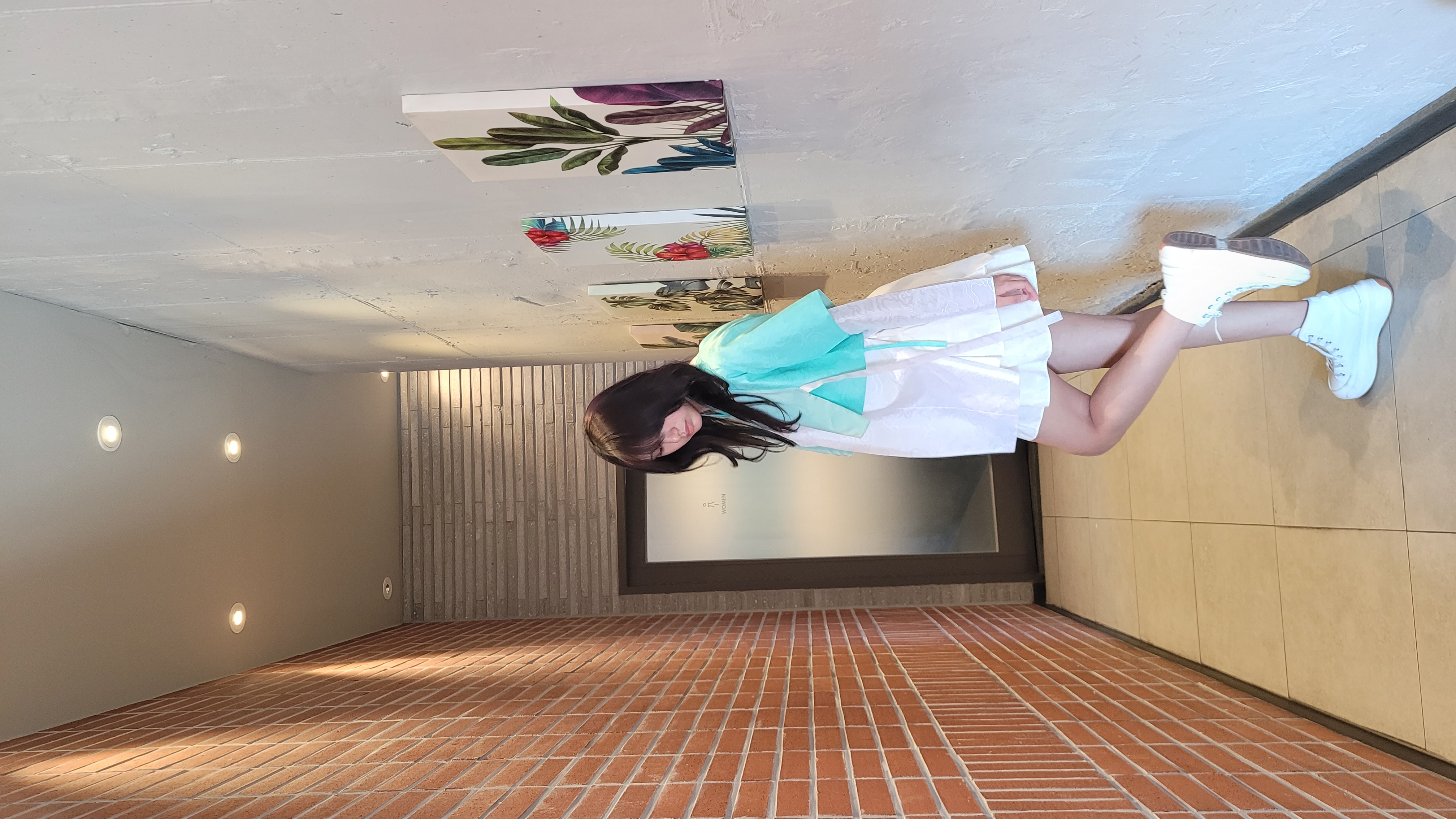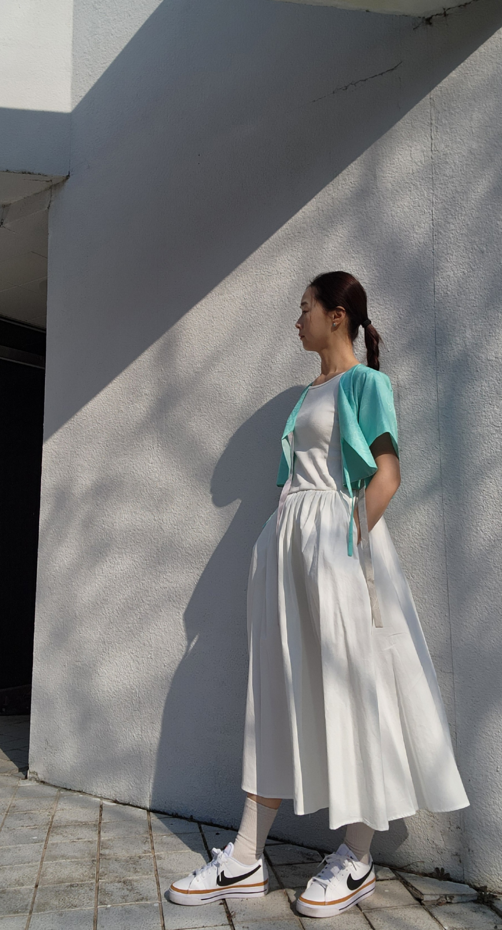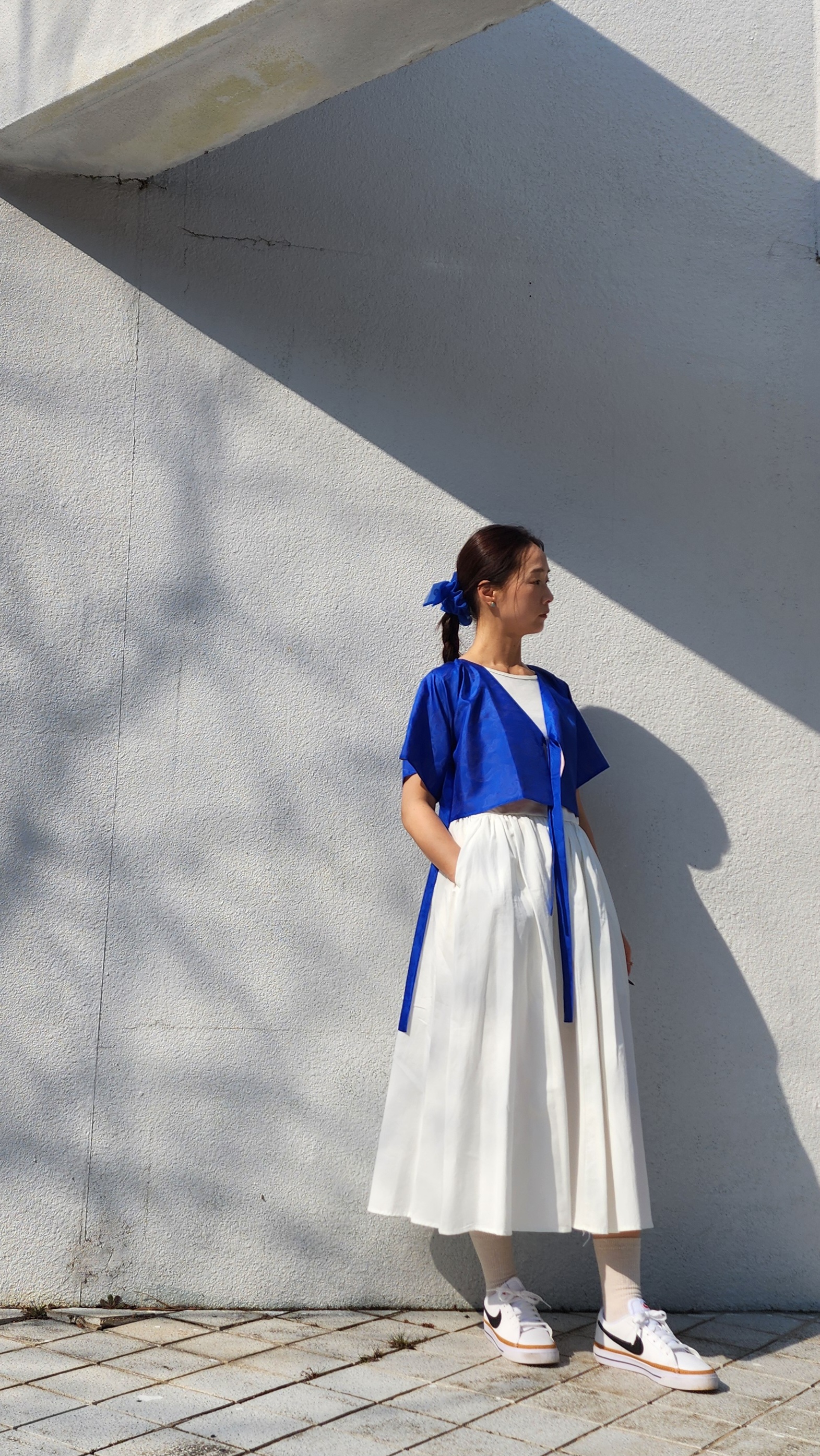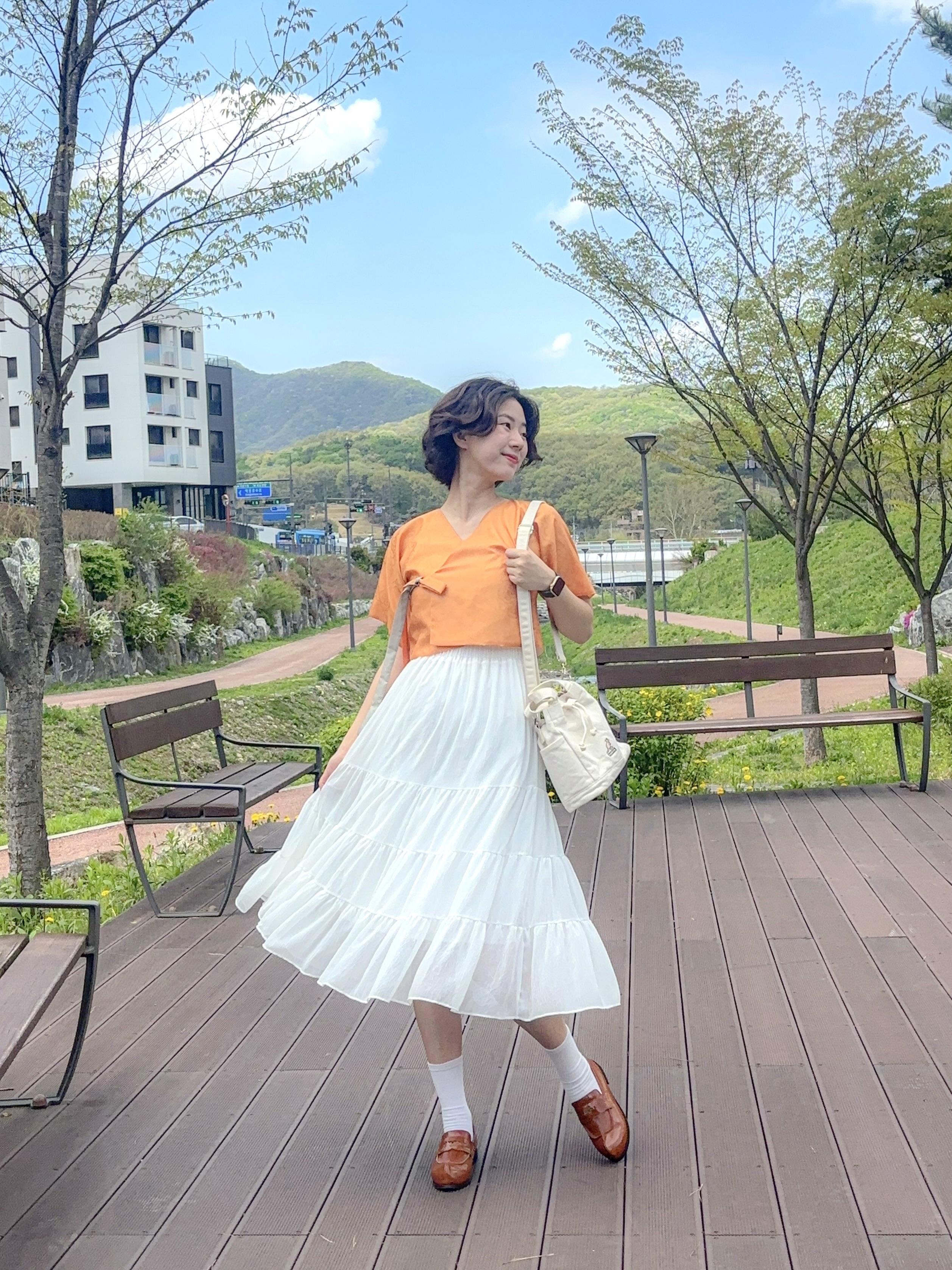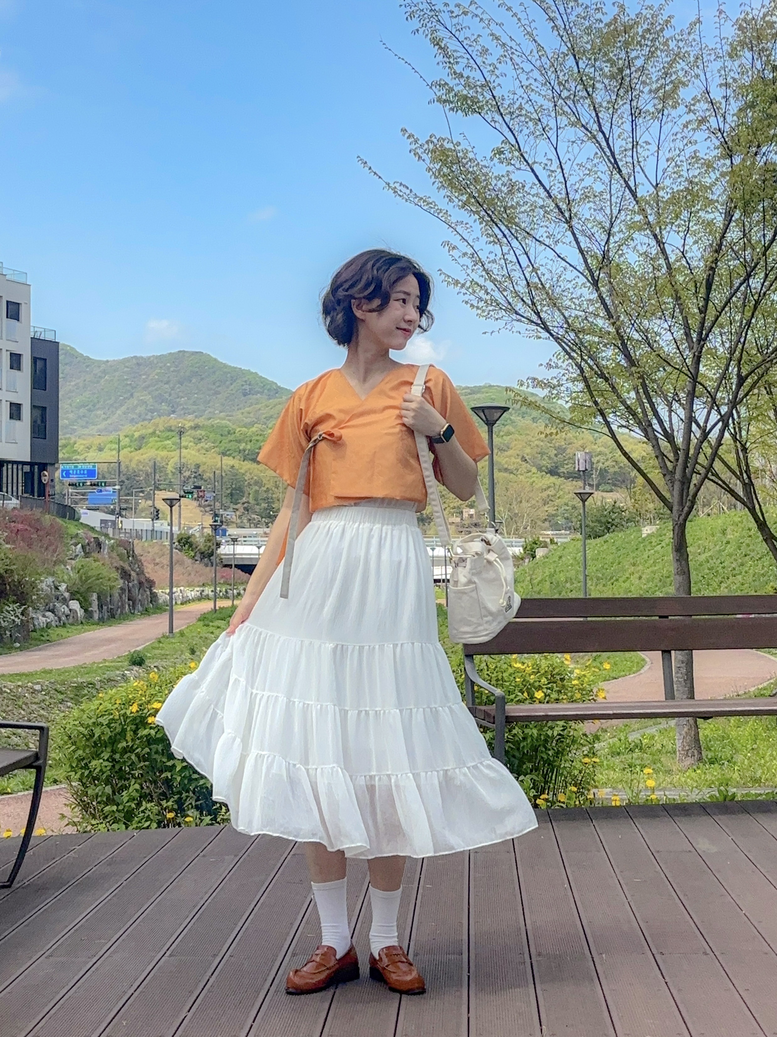 ✔ 맥시스커트에 매치해 페미닌한 감성으로