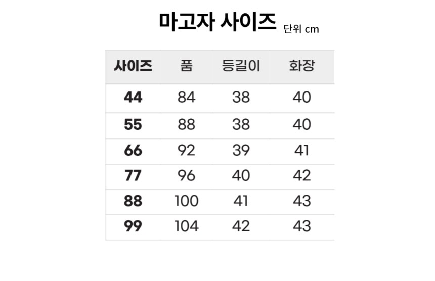 *저고리와 마고자 반시이즈로 고민하시는 분은 반사이즈 위로 주문해 주세요.