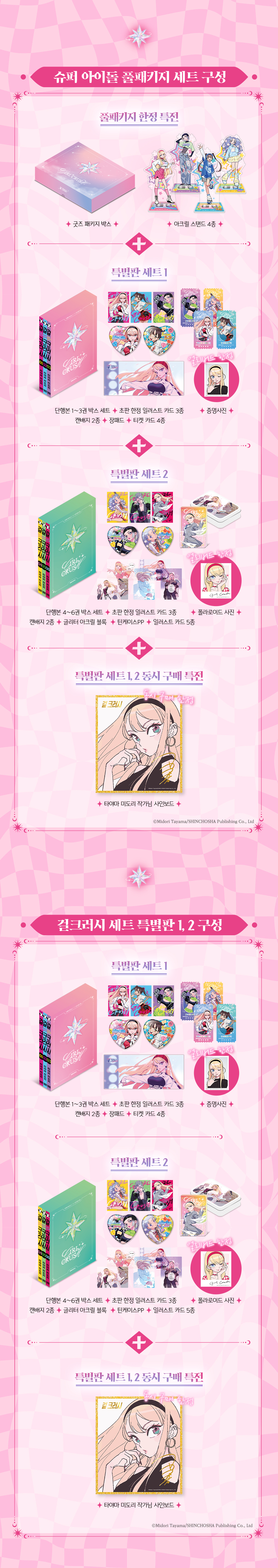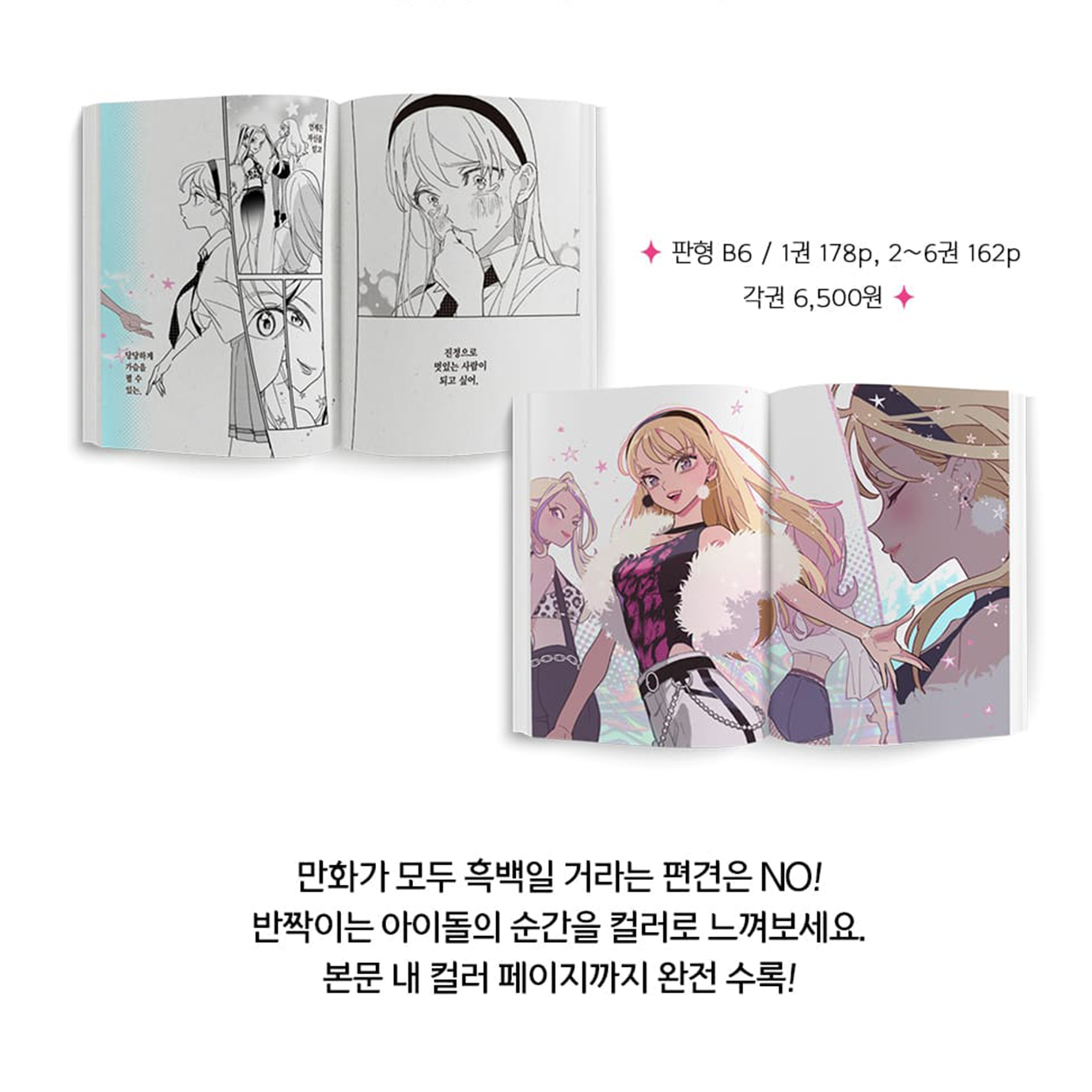 K-POP 아이돌을 꿈꾸는 텐카, 에리안, 지우, 민채의 반짝이는 이야기를 여러분과 소장할 수 있는 형태로 함께 나누고 싶습니다. 단행본부터 한정 수납박스, 그리고 굿즈까지 모든 구성에 애정을 담아 준비했습니다.