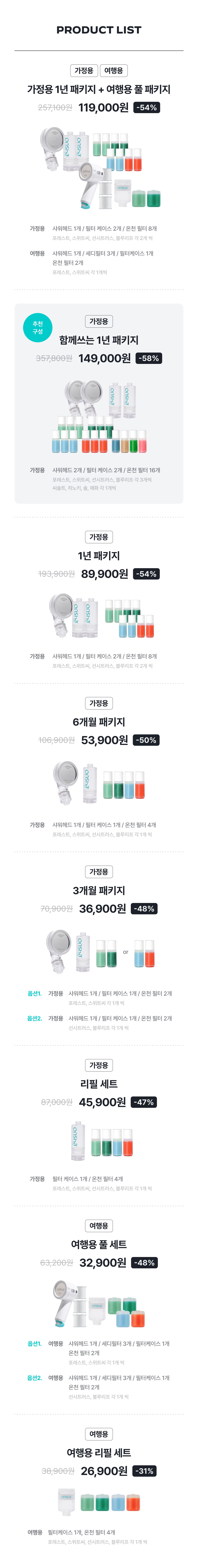 A. 가정용의 경우 25~ 40일(평균 1달) 정도 사용 가능하며, 여행용의 경우 7~ 10일 정도 사용 가능합니다.