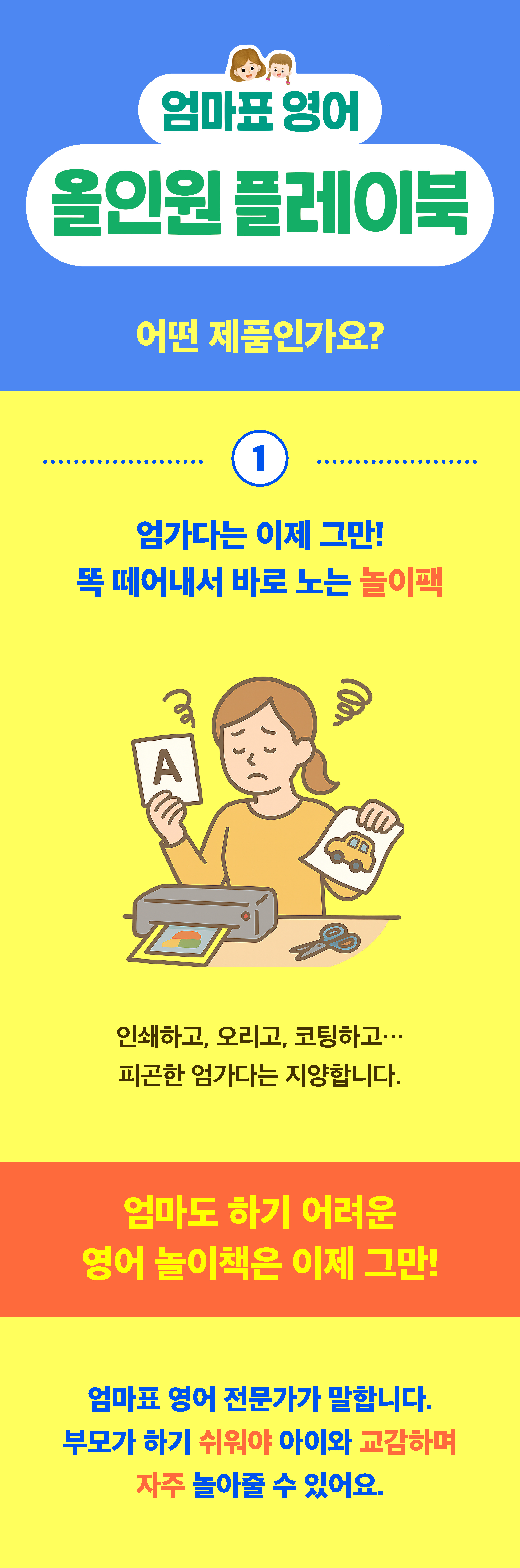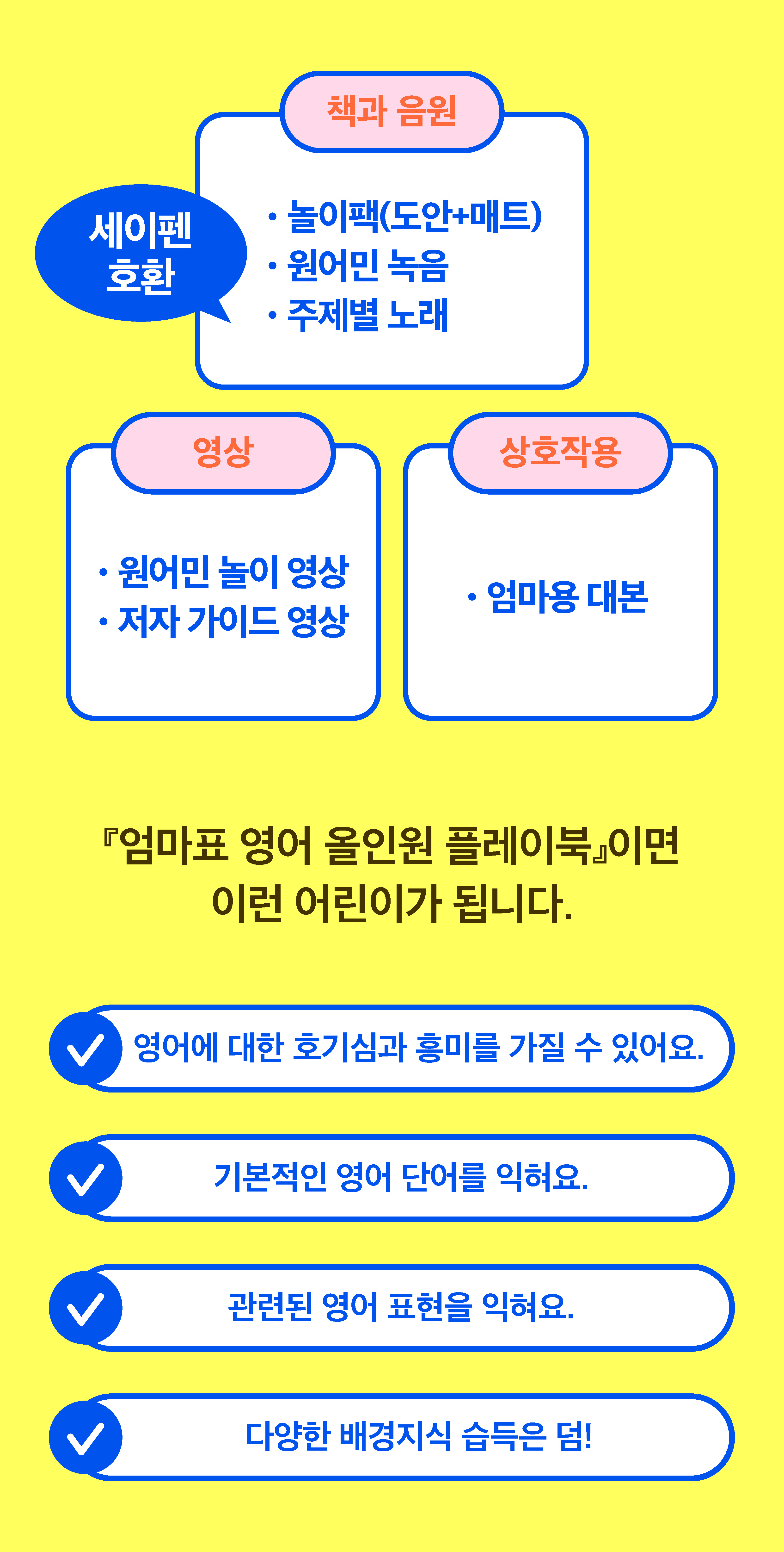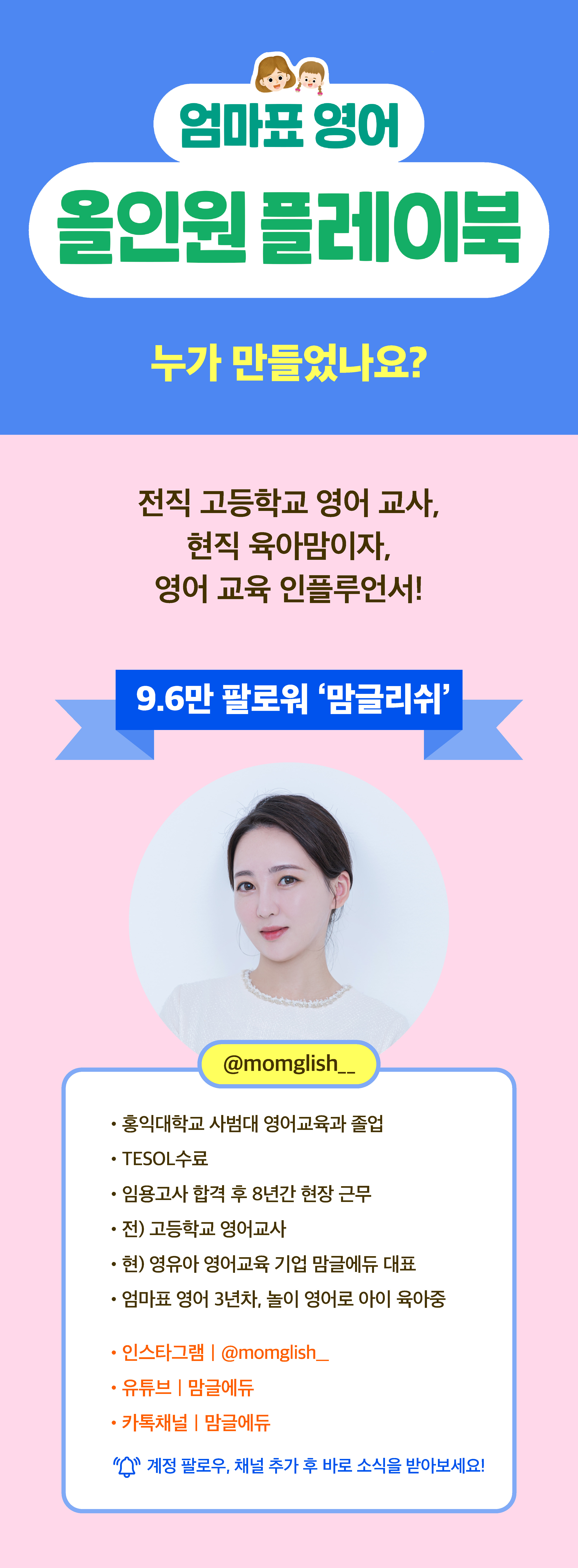 1. 📚 엄마표 영어 올인원 플레이북 - 놀이팩, 음원, 영상 포함한 1~6세 영어 학습 키트 2. 🎵 원어민 음원과 영상 제공 - 자연스러운 영어 노출과 놀이형 학습 지원 3. 🎁 펀딩 한정 특별 에디션 - 3권 세트와 송북, MP3 포함 할인 판매