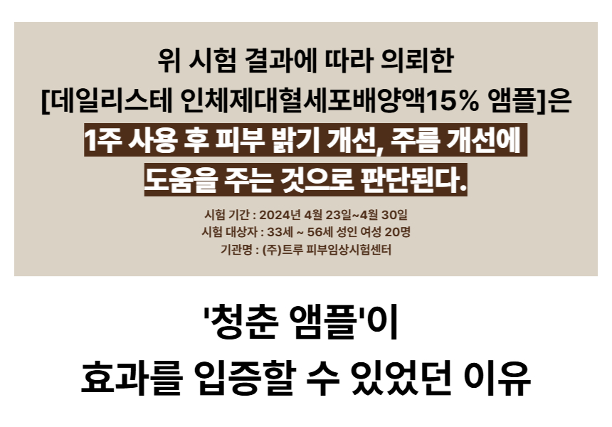 청춘 앰플에 담긴 인체제대혈세포배양액 15% 함유량은