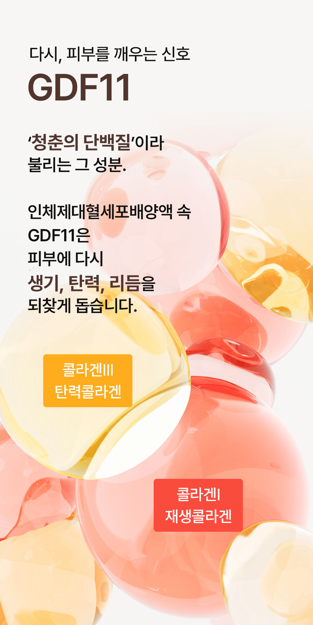 그 중에서도 '청춘의 단백질'로 알려진 GDF11은 피부과학 분야의 다양한 연구에서 건강한 피부 환경을 위한 핵심 인자로 소개되고 있습니다.