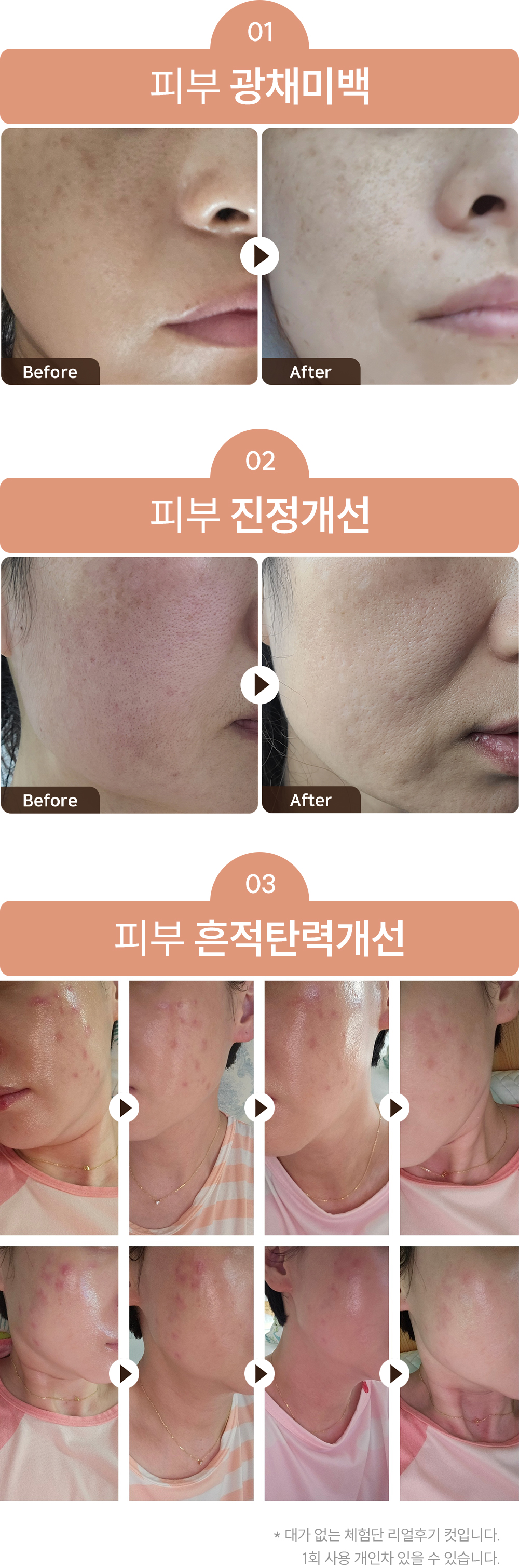 피부 개선을 위해 식약처 고시 기능성 성분들을 엄선해 담았습니다.
