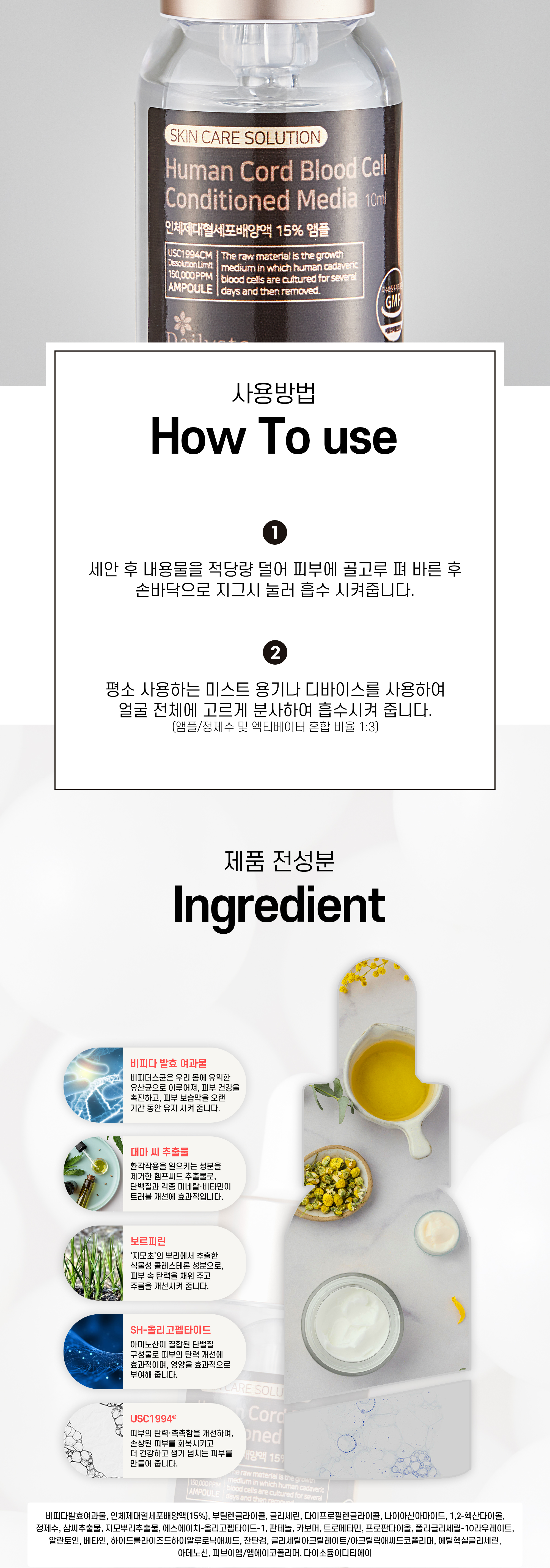 물 한 방울 섞지 않은, 100% 진한 제대혈세포배양액으로 담았습니다.