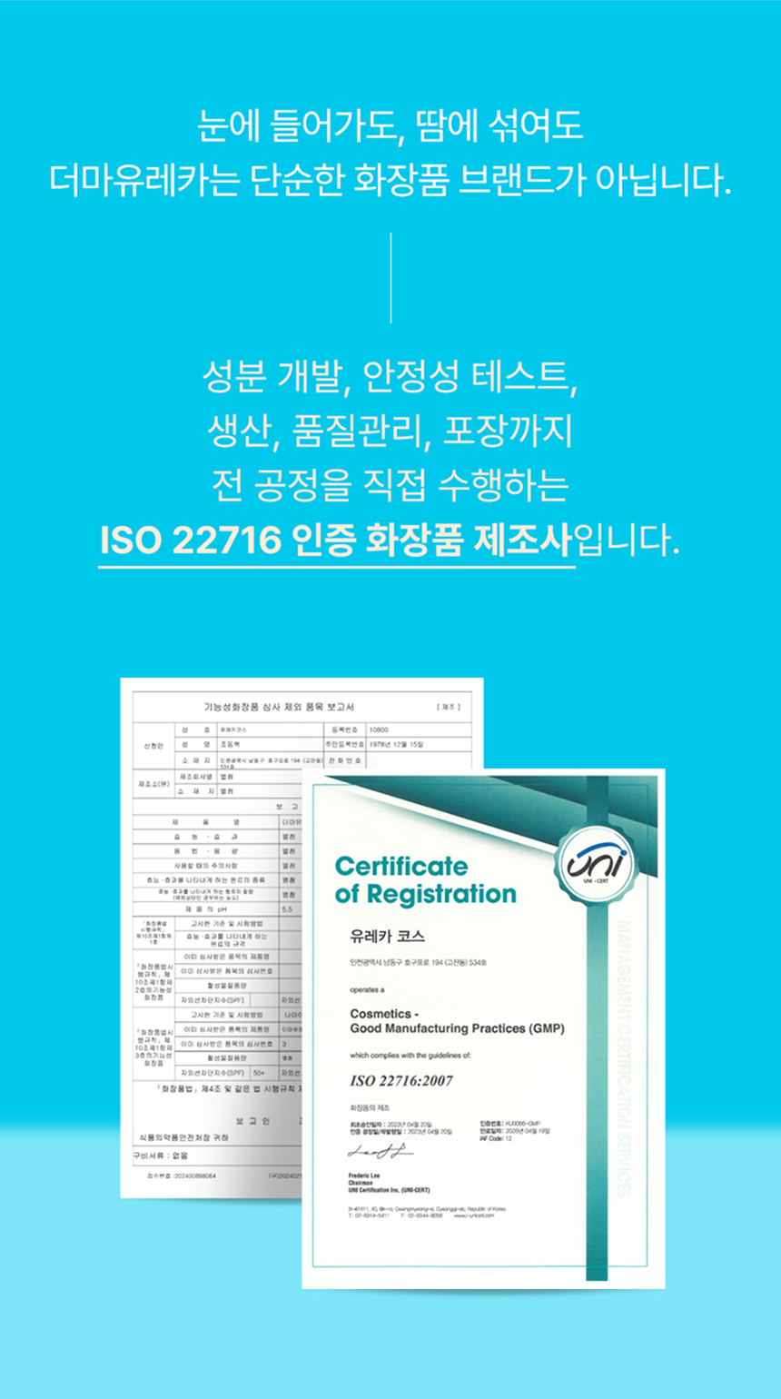 유레카코스는 원료 개발부터 생산, 품질관리, 출고까지 전 과정을 직접 수행하는 연구기반 화장품 브랜드입니다.