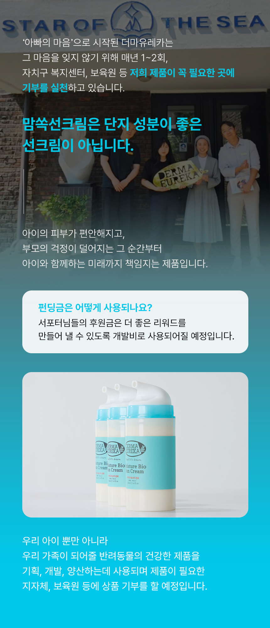 # 펀딩 성공금은 2025년 지자체와 보육원과 같이 우리 유레카코스의 제품이 필요한곳에 기부할 예정이며, 새소식을 통해 공지 할 예정입니다.