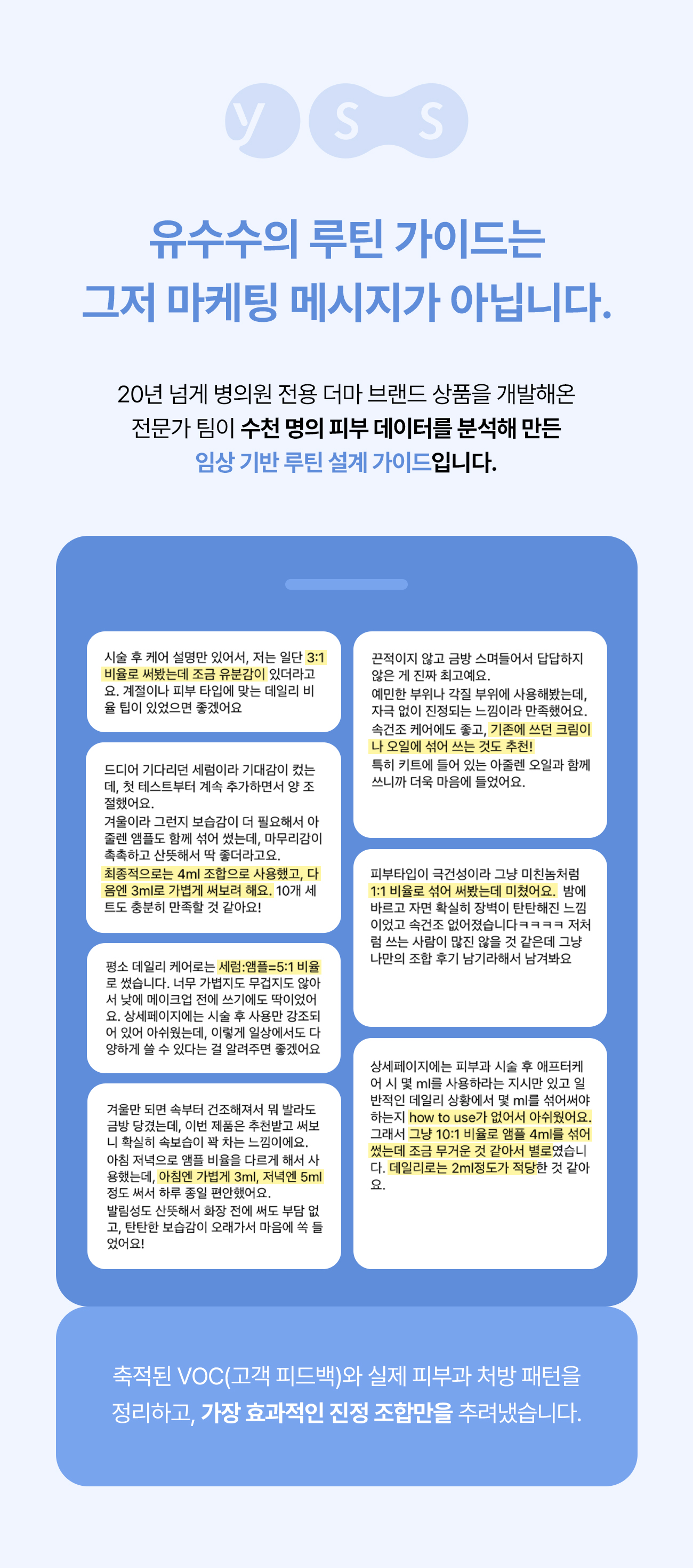 A. 사용 가이드에 따라 피부 타입/상황별로 추천 루틴을 제공합니다.