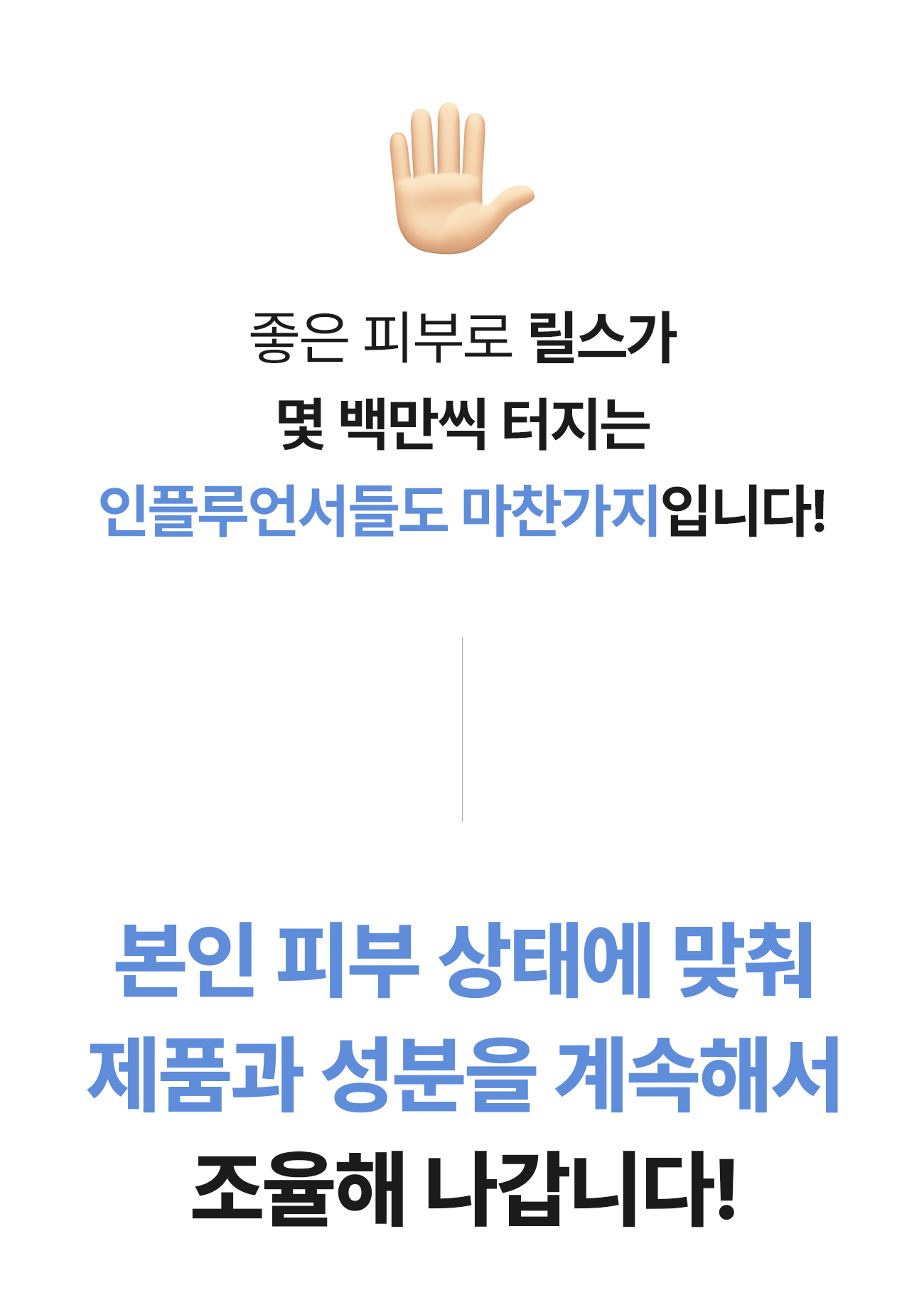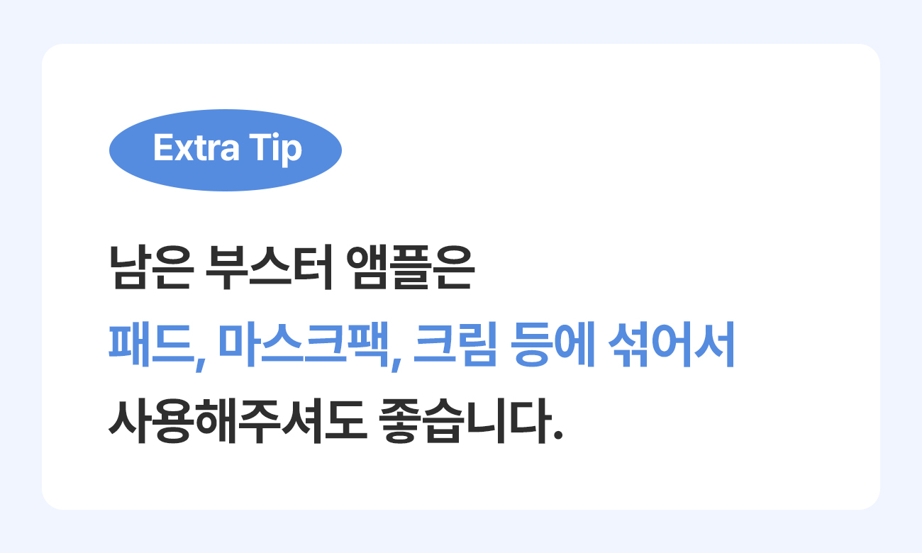피부 상태에 따라 앰플의 양을 조절해 가장 편안한 루틴으로 설계하실 수 있습니다.