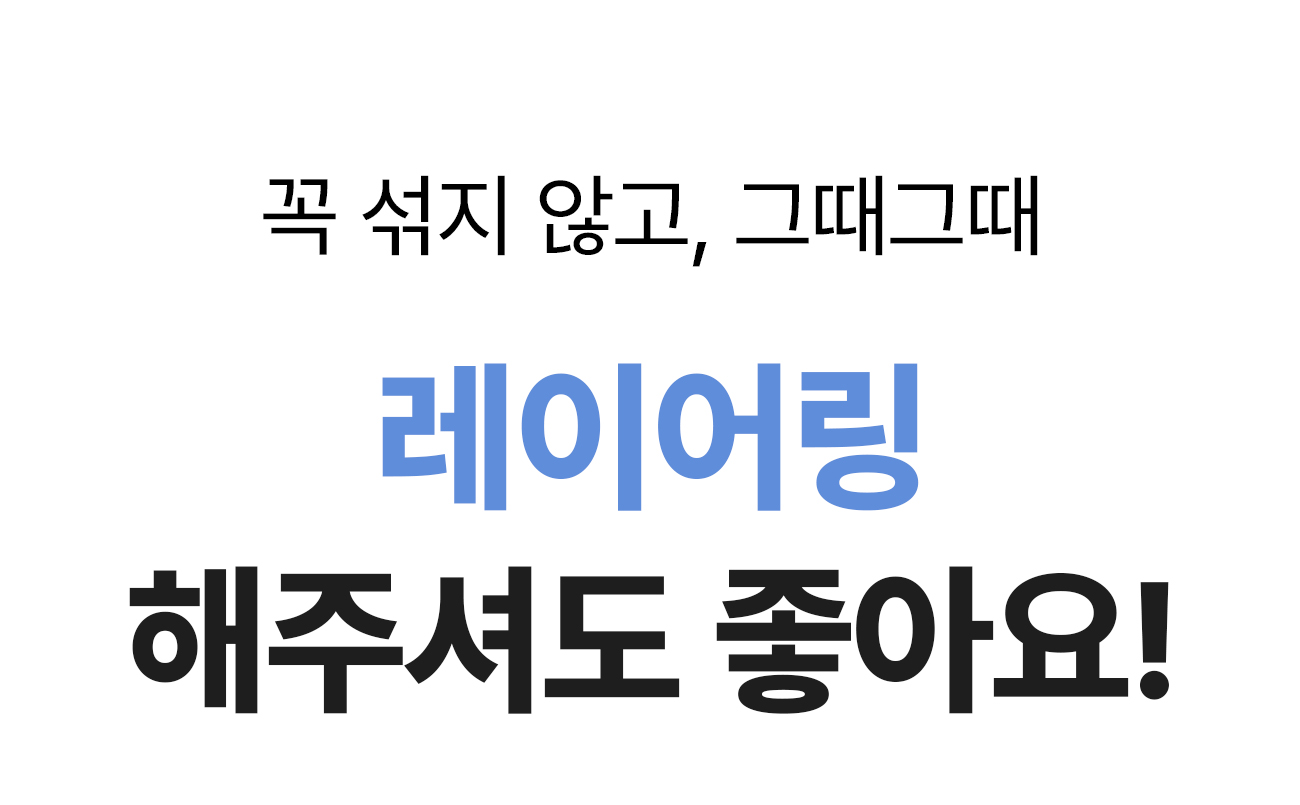 A. 제품의 성분이 잘 혼합되어 효과적으로 흡수되도록 하기 위해, 용기 안에 미리 섞어 흔들어 사용하는 것을 권장드리나, 그날그날 피부 상태에 따라 다양하게 조합해서 쓰시고 싶은 분은 별도로 얼굴에 떨어트려 레이어링하거나, 손바닥 또는 손등에서 섞어서 사용하셔도 좋습니다.