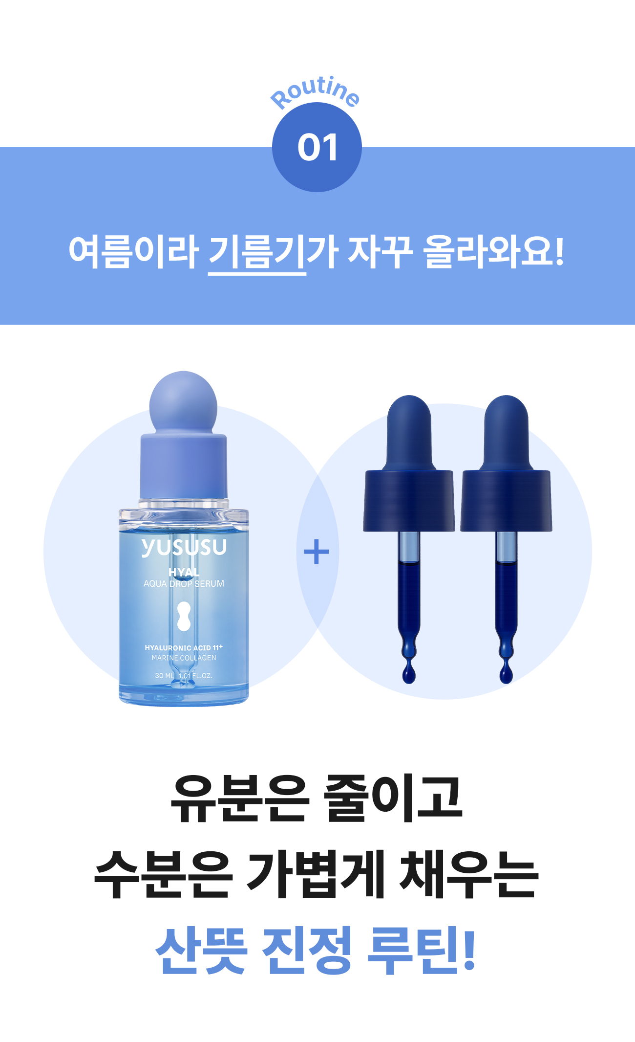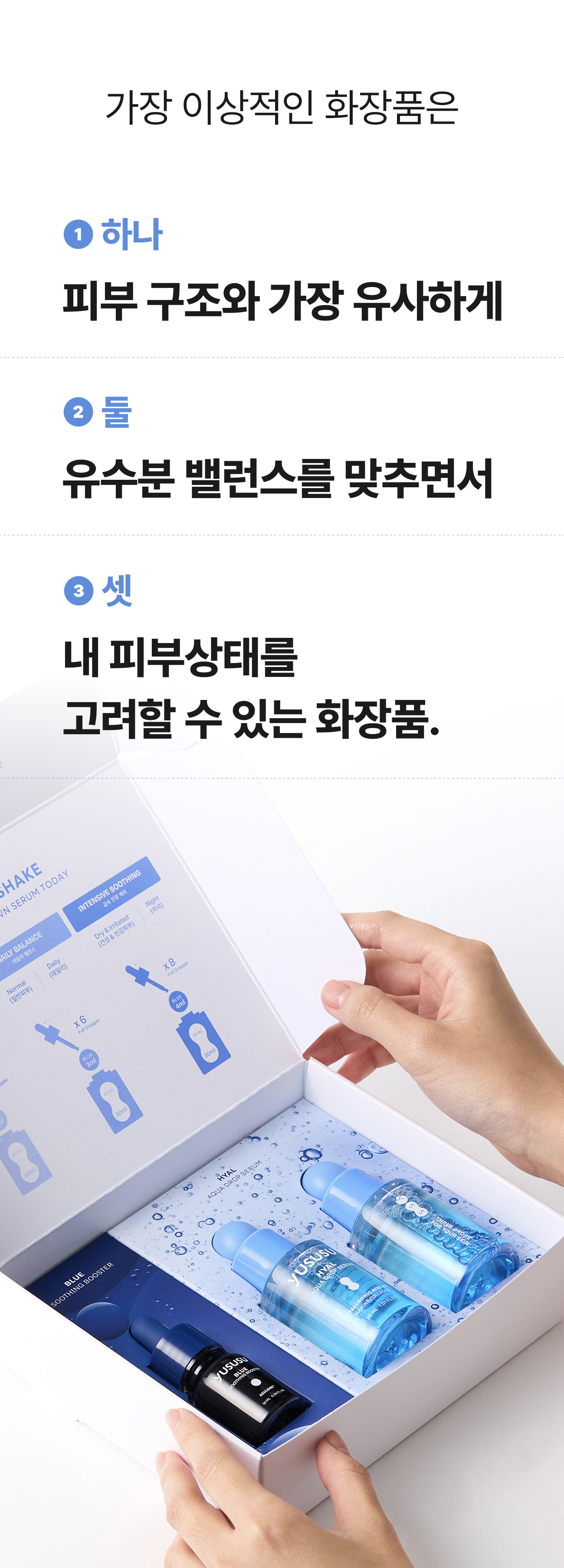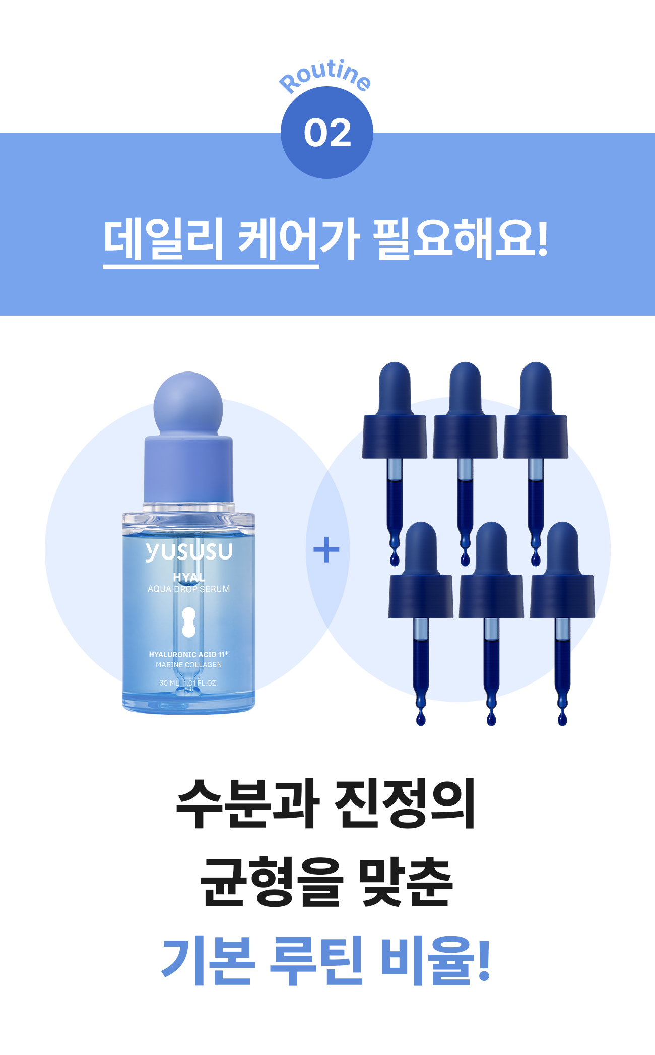예) 지성 & 아침 루틴: 2스포이드 / 중성 & 데일리 루틴: 6 스포이드 / 건성 & 저녁 루틴: 8스포이드
