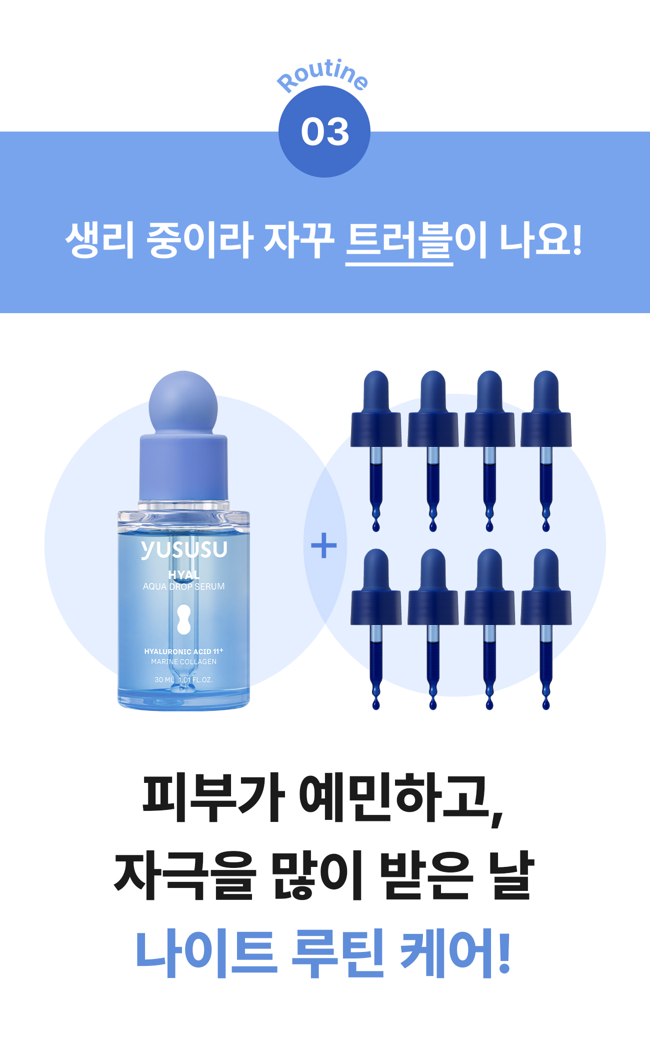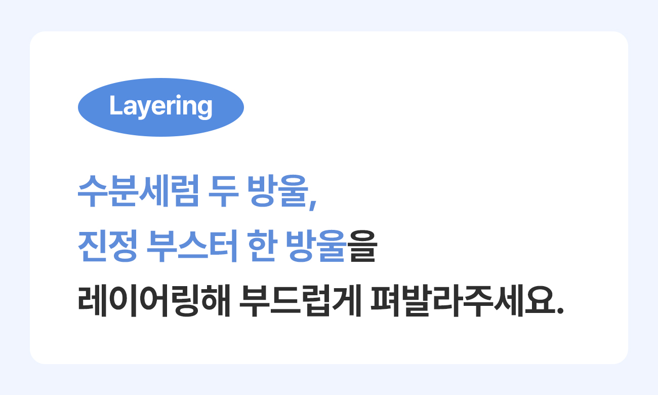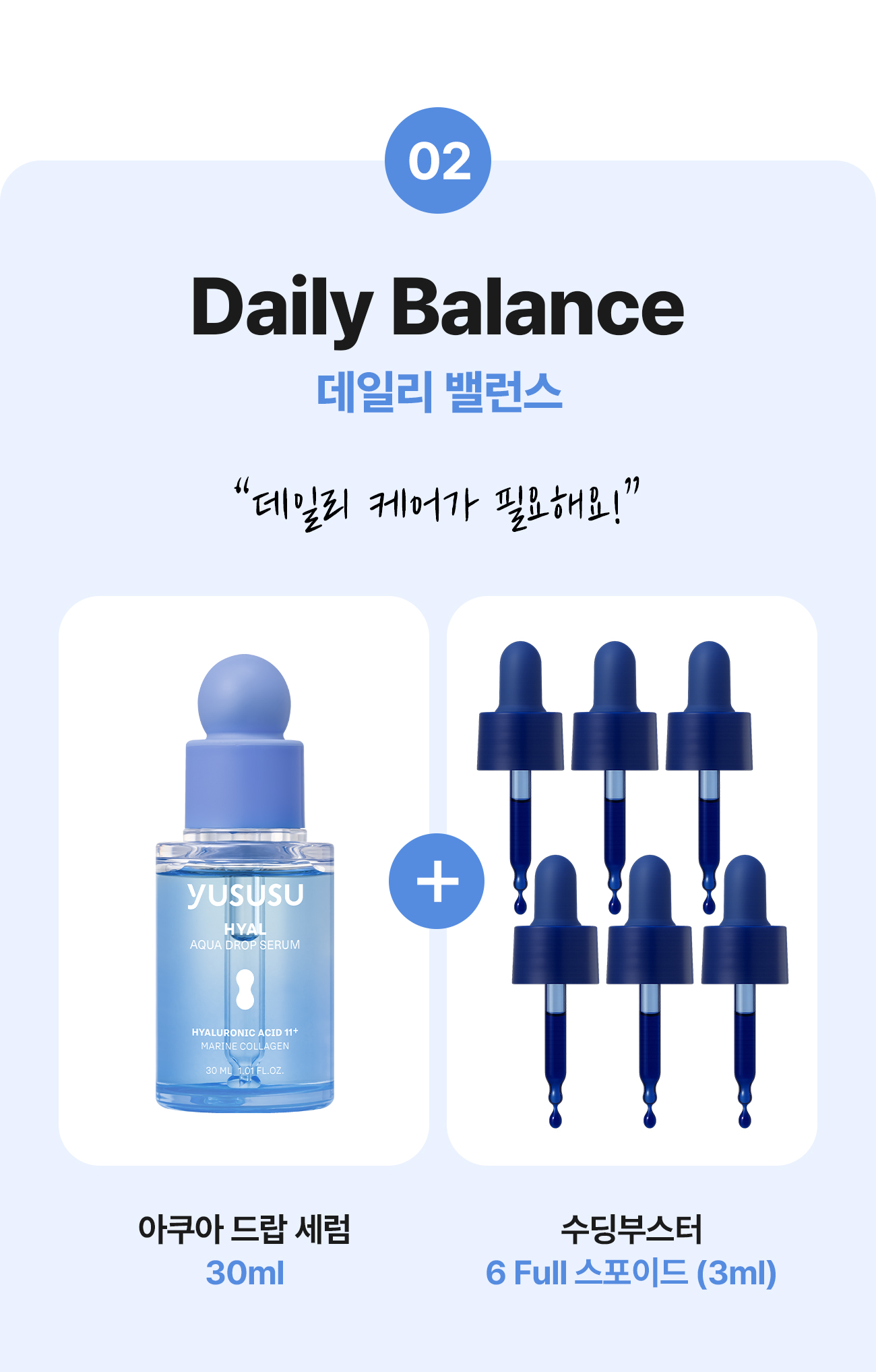 예) 지성 & 아침 루틴: 2스포이드 / 중성 & 데일리 루틴: 6 스포이드 / 건성 & 저녁 루틴: 8스포이드