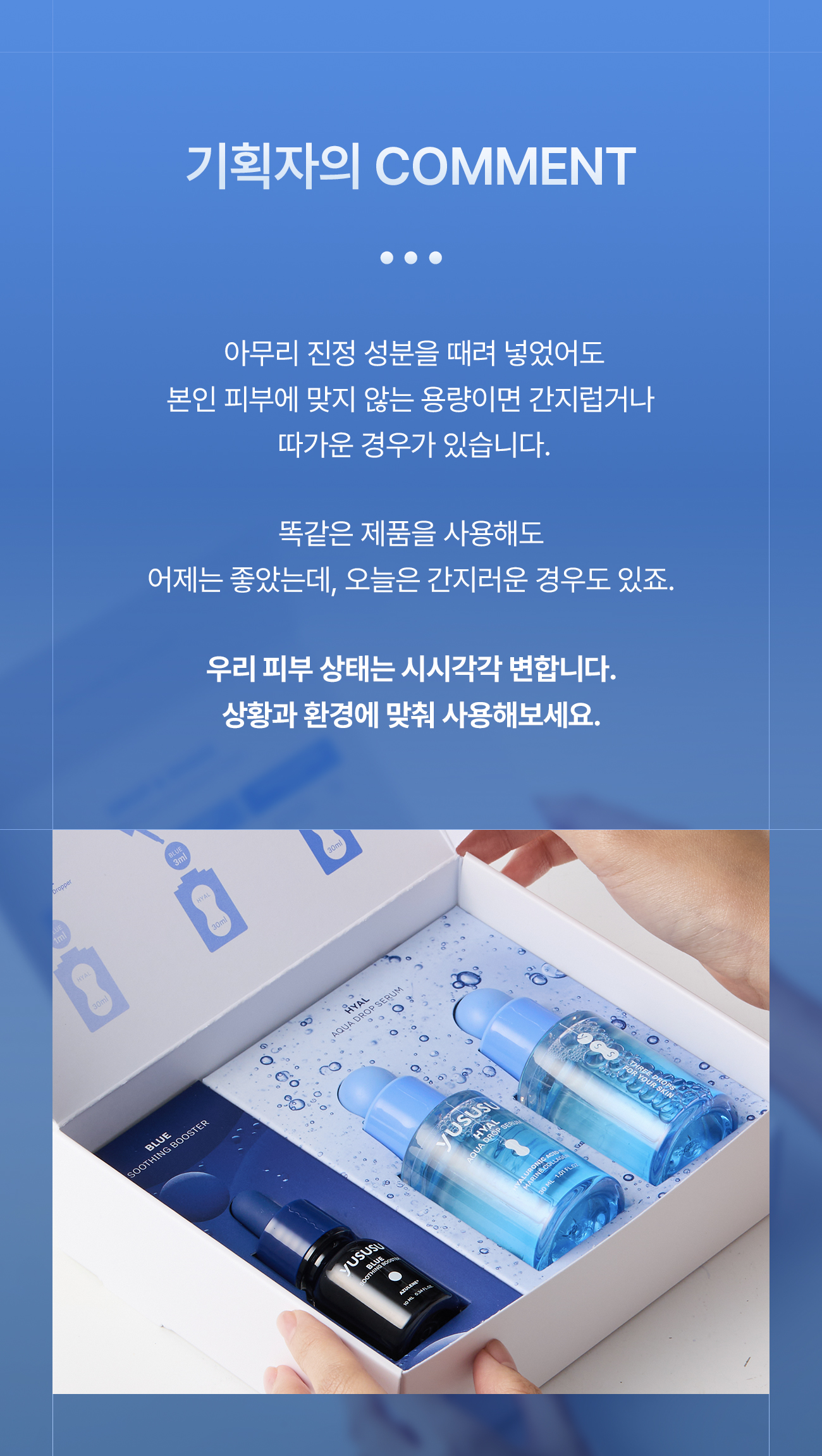모두가 더마를 말하는 시대, 정작 놓치기 쉬운 건 ‘지금 내 피부가 어떤지’입니다.유수수는 내 피부는 내가 가장 잘 안다는 감각에서 출발하여 나를 닮은 퍼스널 더마, 능동형 더마를 제안합니다.