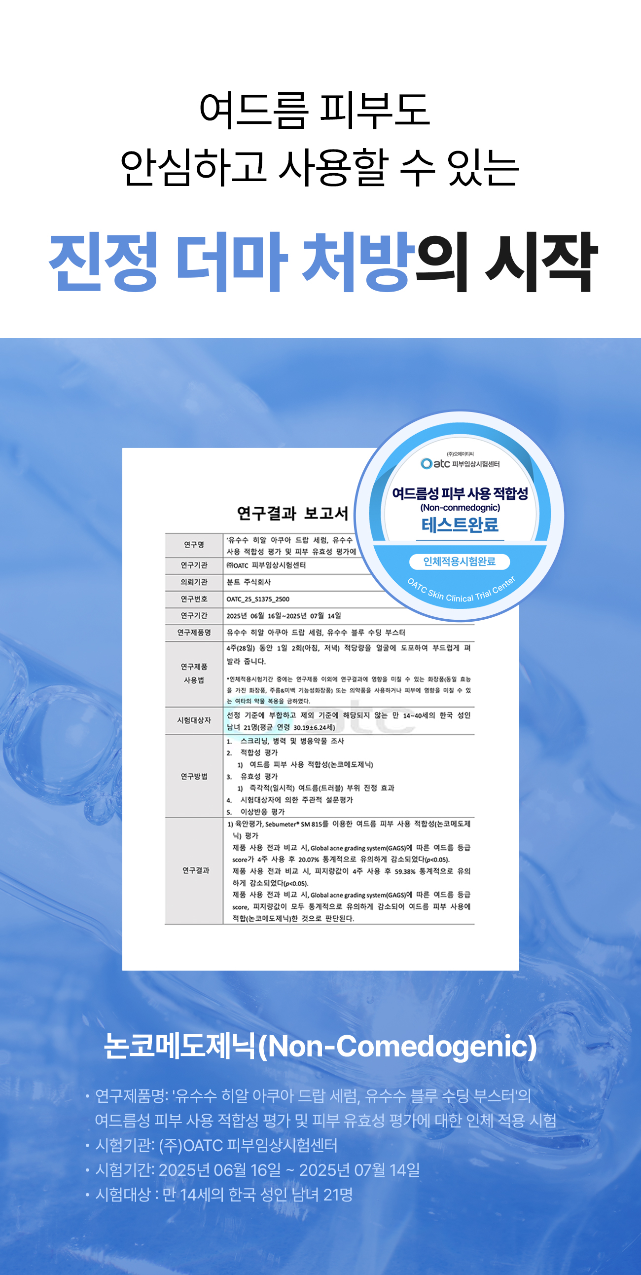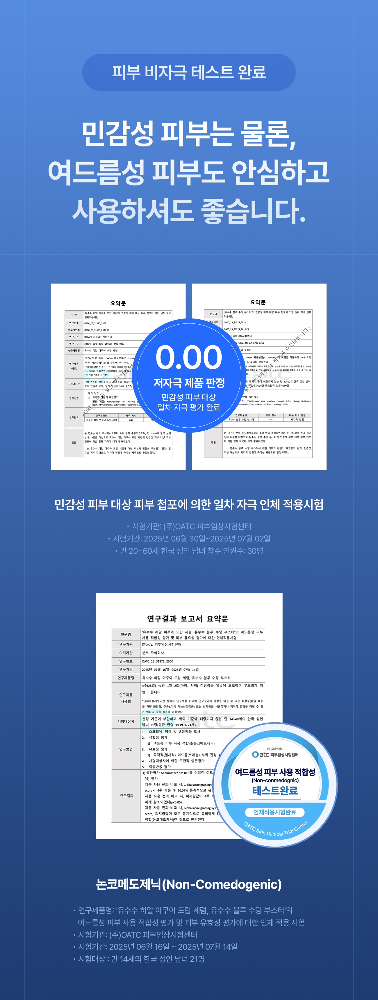 A. 네! 유수수는 논코메도제닉 테스트 및 민감성 피부 대상 저자극 테스트를 모두 완료한 제품입니다. 여드름 유발 성분 없이 진정에 특화되어 있어 안심하고 사용하실 수 있어요.