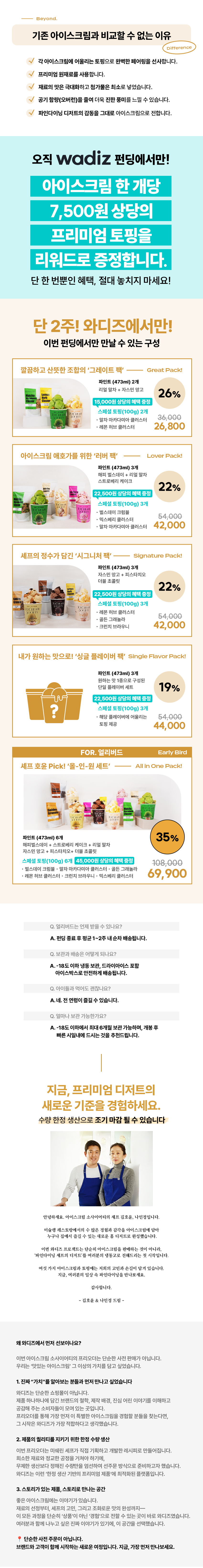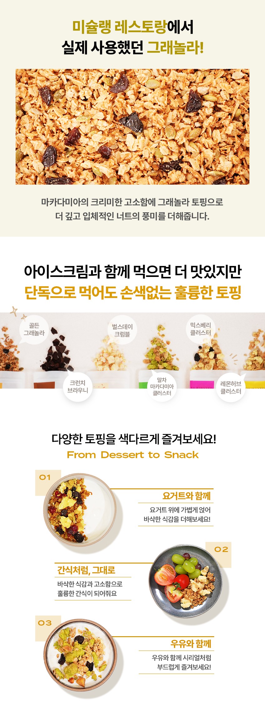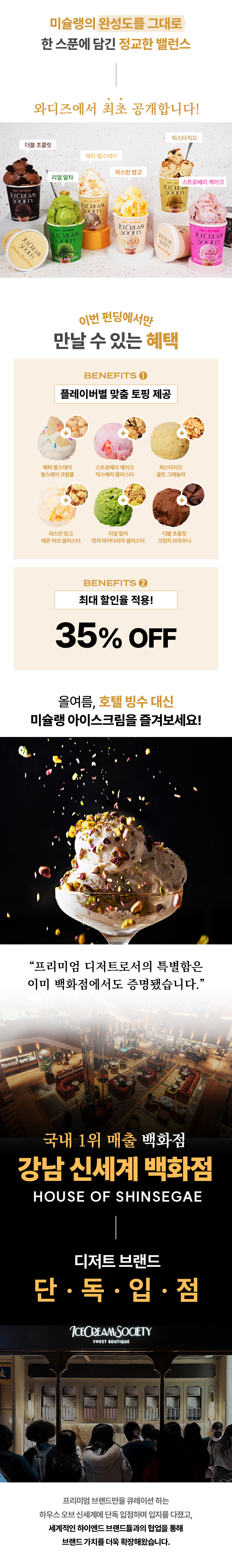 1. 🍨 미슐랭 셰프 프리미엄 아이스크림 - 미슐랭 셰프가 만든 정교한 밸런스의 아이스크림 6종 2. 🎉 맞춤 토핑과 할인 혜택 - 플레이버별 토핑과 최대 35% 할인으로 합리적 구매 가능