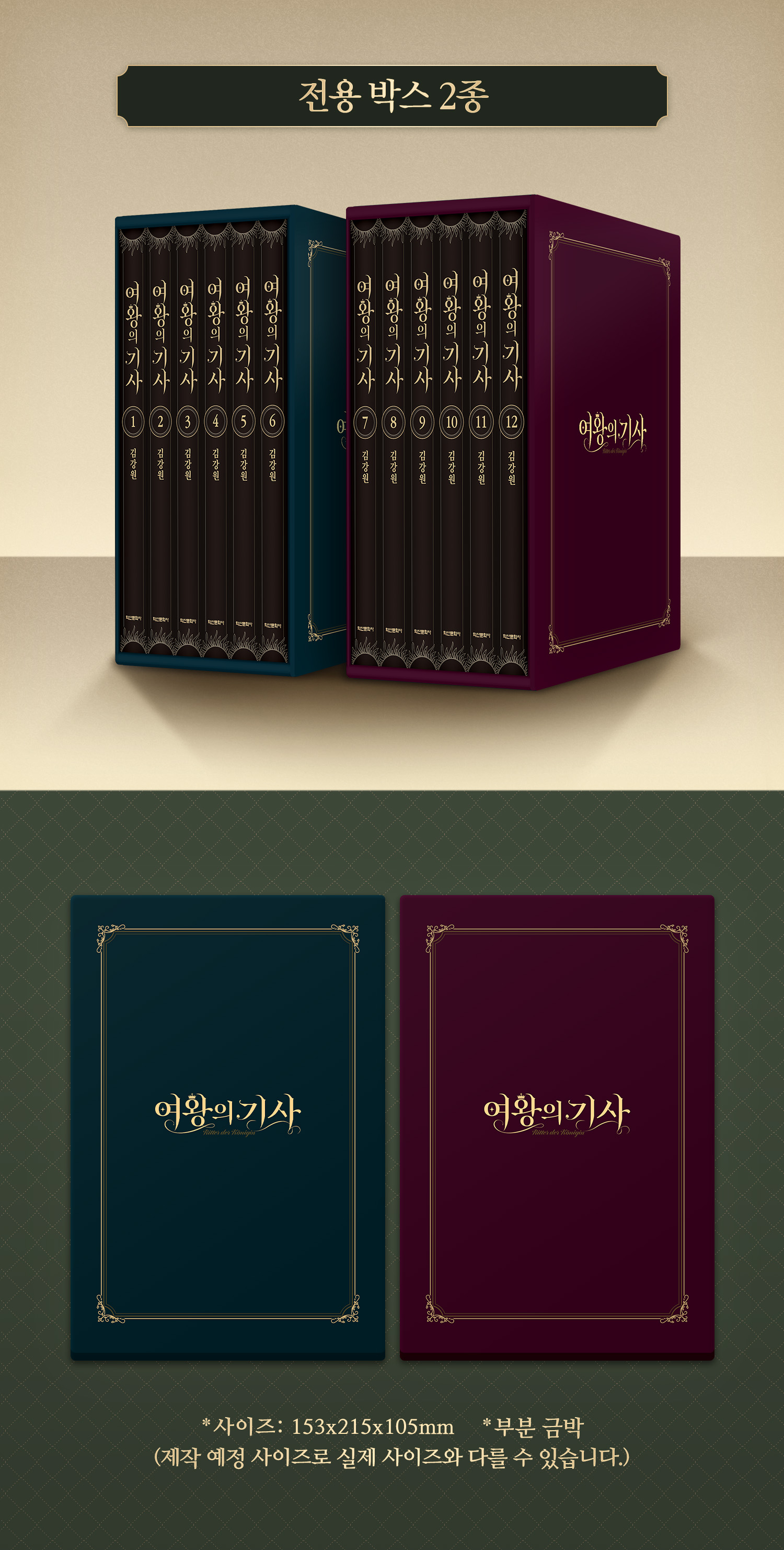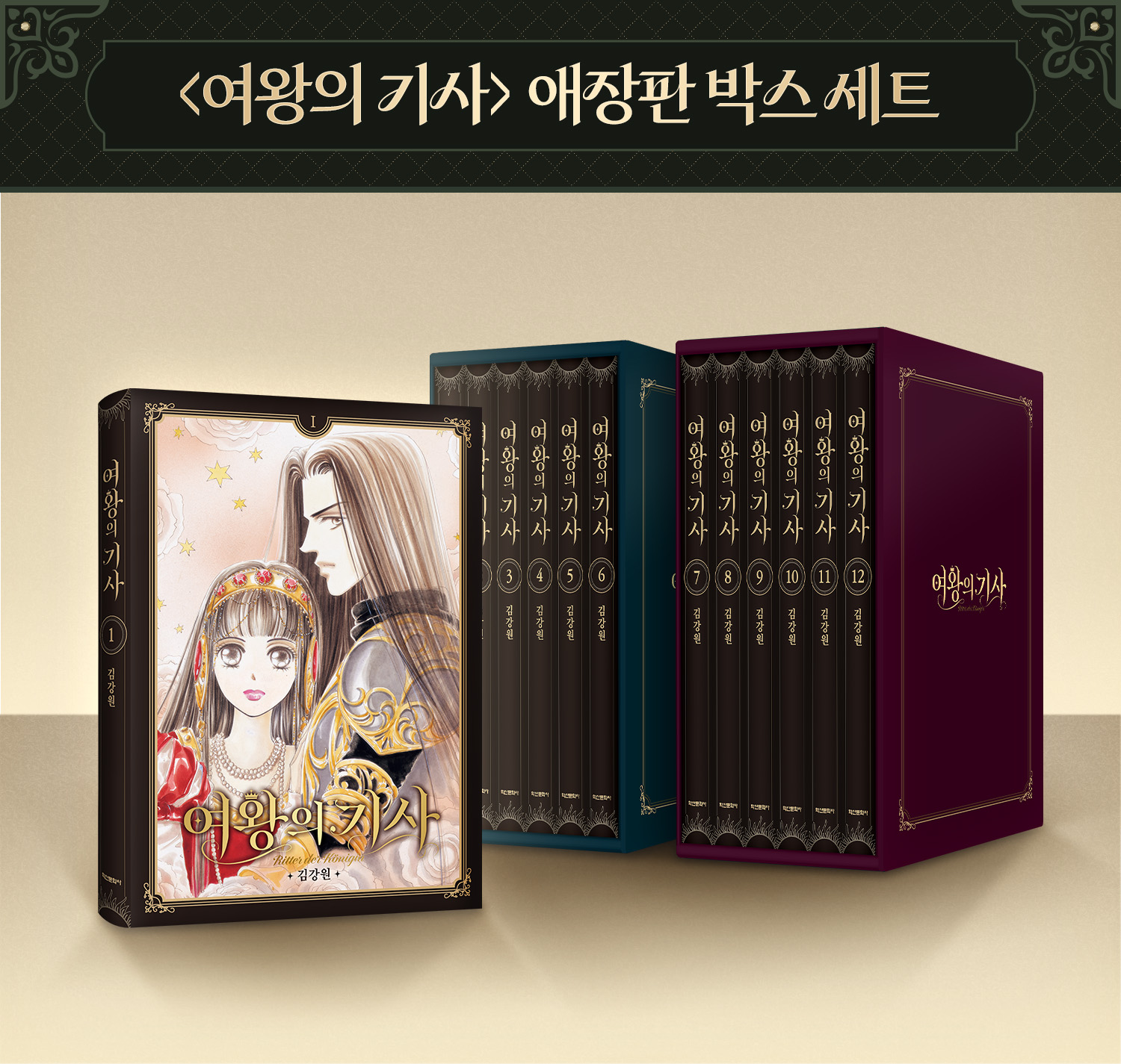 <여왕의 기사> 박스 세트는 1-6권, 7-12권을 나눠 담을 수 있도록 2개로 분리하여 제작하였습니다.