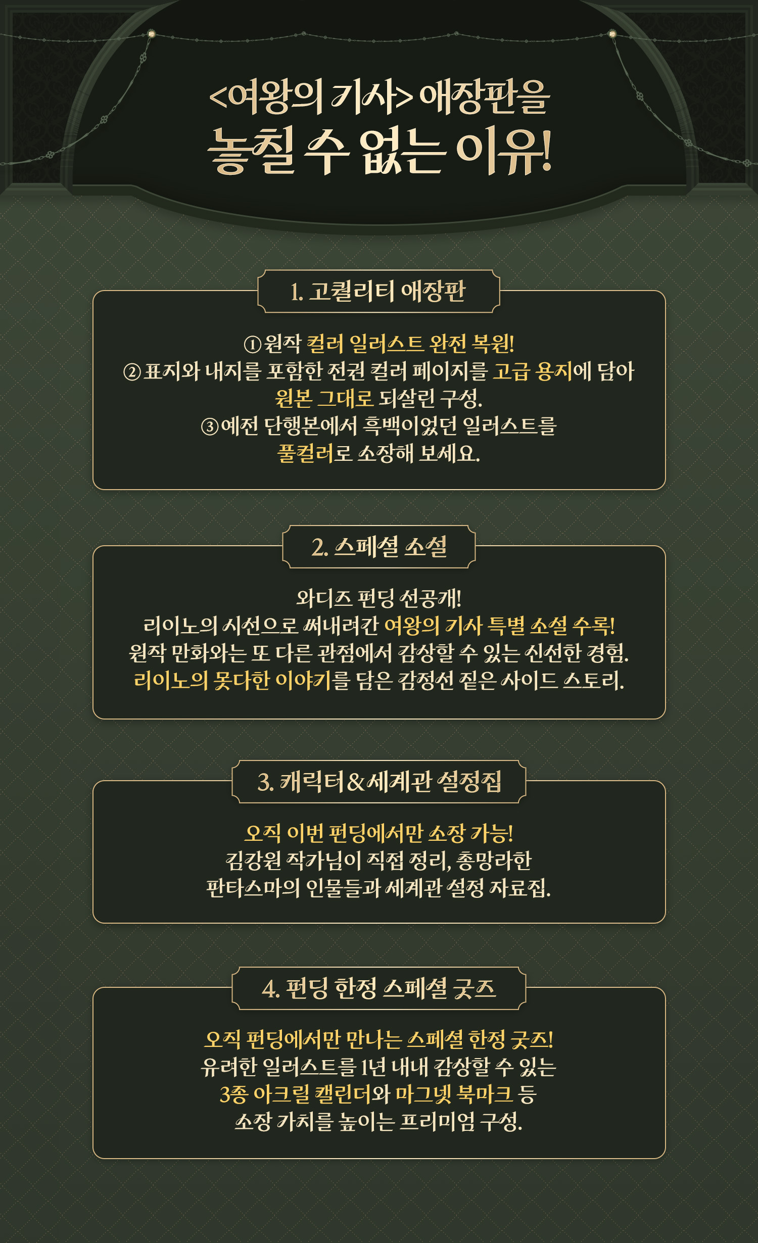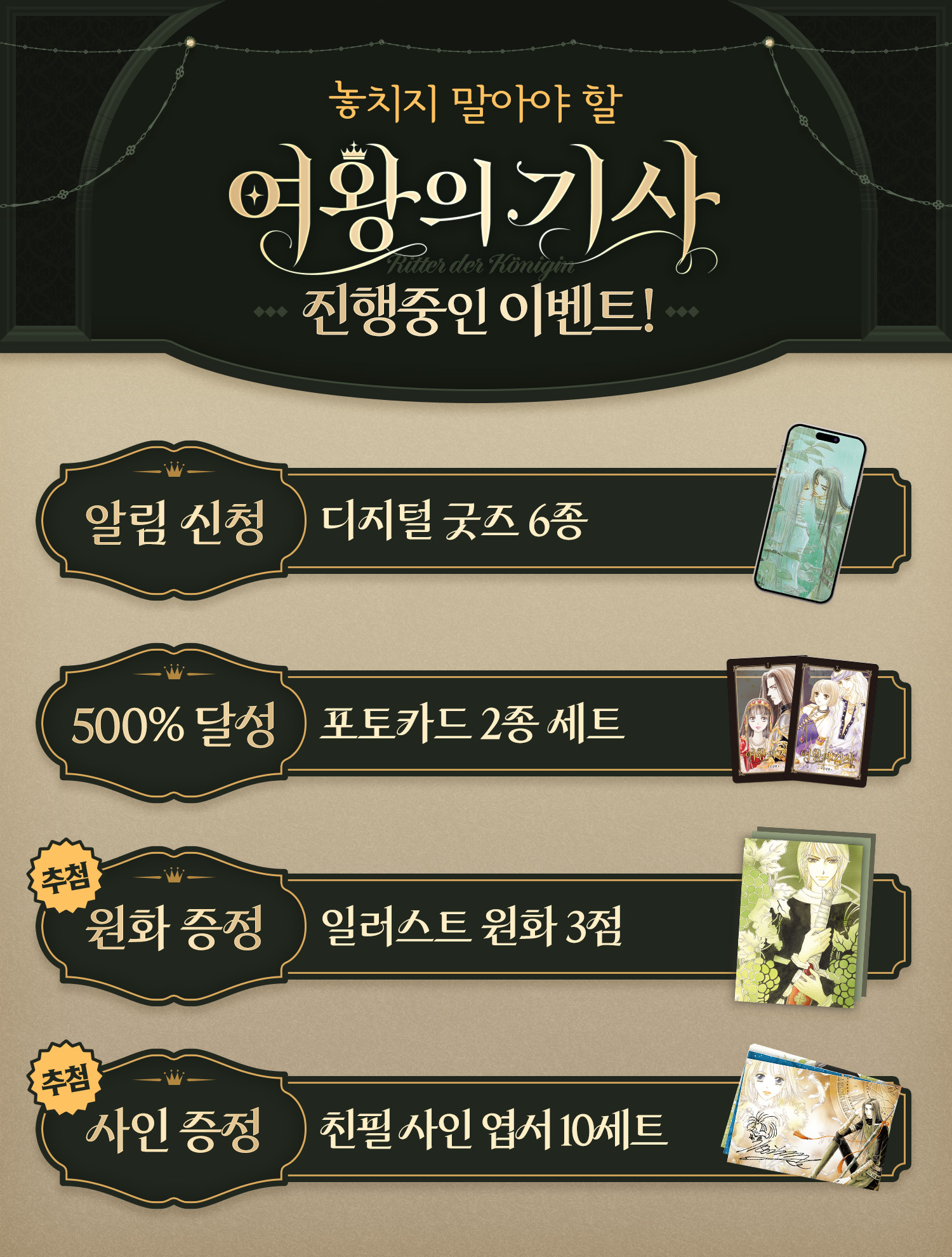 그리고, <여왕의 기사>를 오래 기다려 주신 여러분을 위해 특별한 선물들을 풍성하게 준비했답니다!