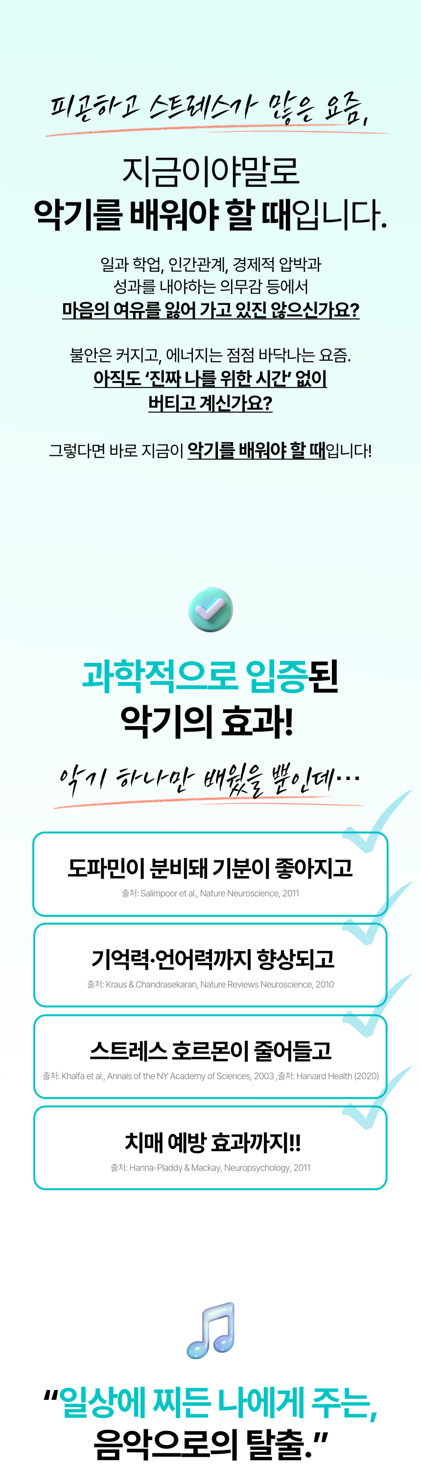 바쁜 현대 사회 속, 지친 마음을 달래줄 ‘악기 하나쯤’은 누구에게나 필요하다고 생각했습니다.