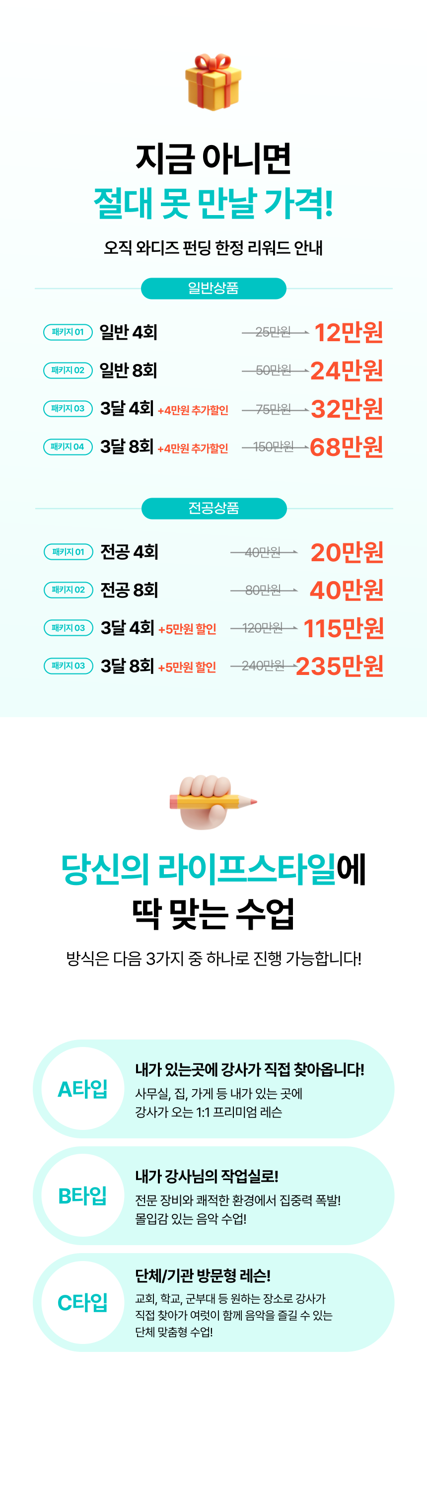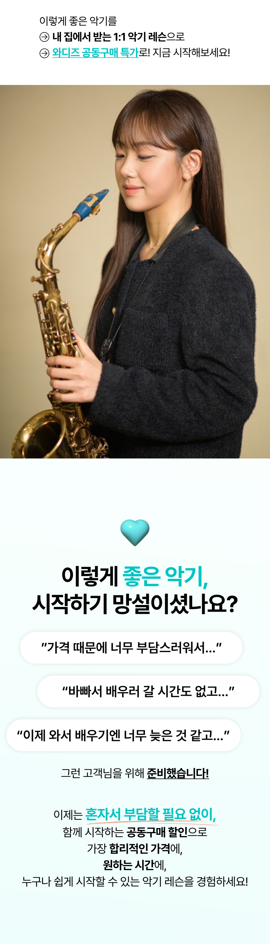 이 기회에, 오랫동안 미뤄둔 악기 한 번 제대로 배워보세요.