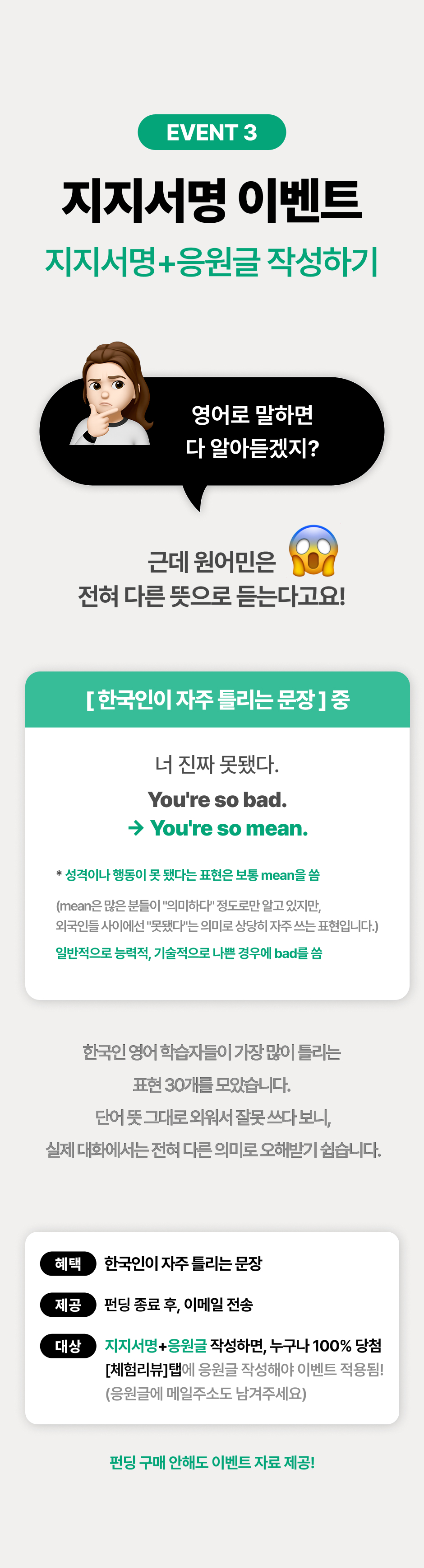 이번 펀딩을 통해 더 많은 학습자가 ‘영어 말문이 트이는 순간’을 경험하길 바랍니다.
