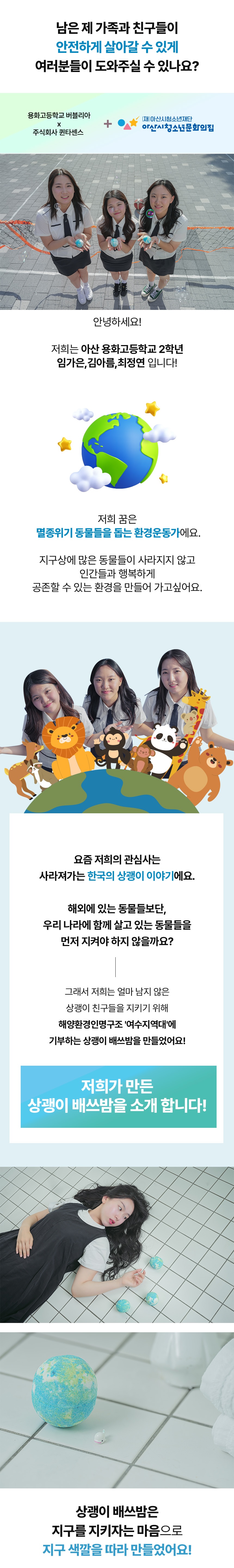 우리나라에 살고 있는 웃는 돌고래, 상괭이를 아시나요? 상괭이를 지키기 위해 만들어진 배쓰밤! 함께 펀딩하고 상괭이와 친구해요! [2025 아산시 청소년 스타트업 프로그램]