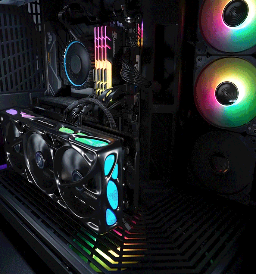 그래픽카드, ARGB 싱크 케이블, 포트먼지마개, 골드 핑거 보호캡, 워런티카드, 스티커